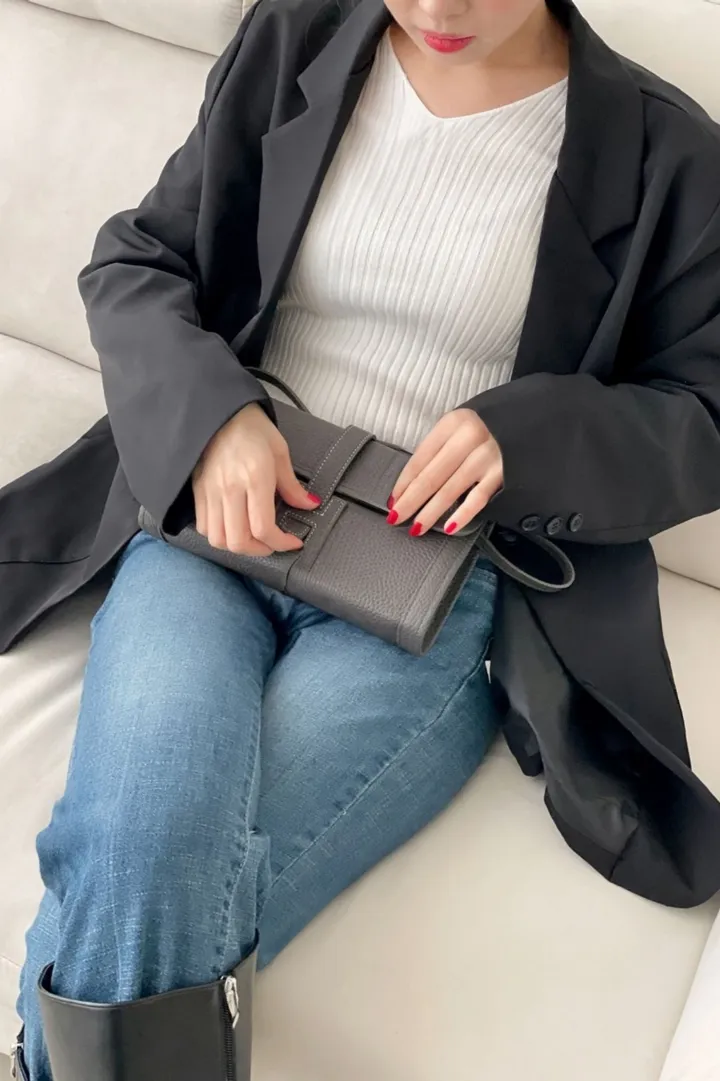 Confeccionado con cuero de calidad, este bolso no solo es hermoso, sino también duradero. Su cierre metálico en forma de bisagra garantizan que tus llaves, monedero y móvil estén bien guardados y seguros durante toda la noche.