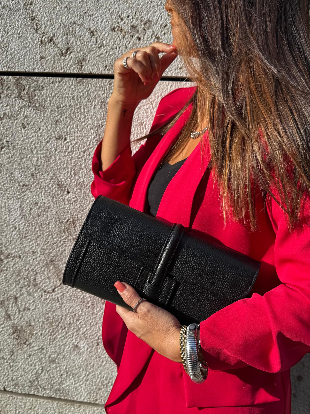 Confeccionado con cuero de calidad, este bolso no solo es hermoso, sino también duradero. Su cierre metálico en forma de bisagra garantizan que tus llaves, monedero y móvil estén bien guardados y seguros durante toda la noche.