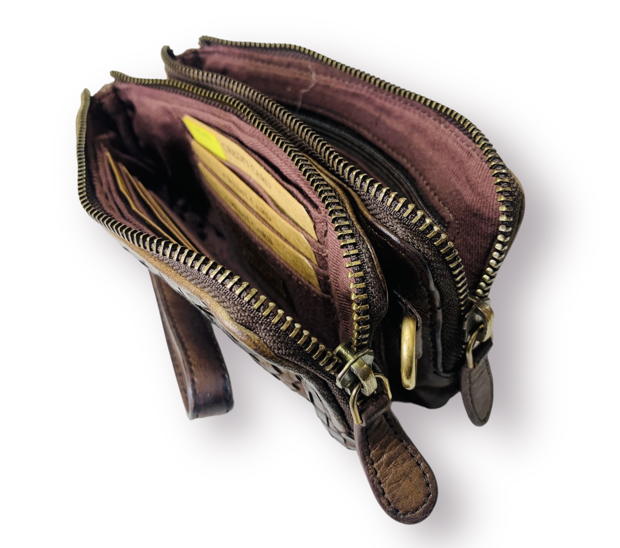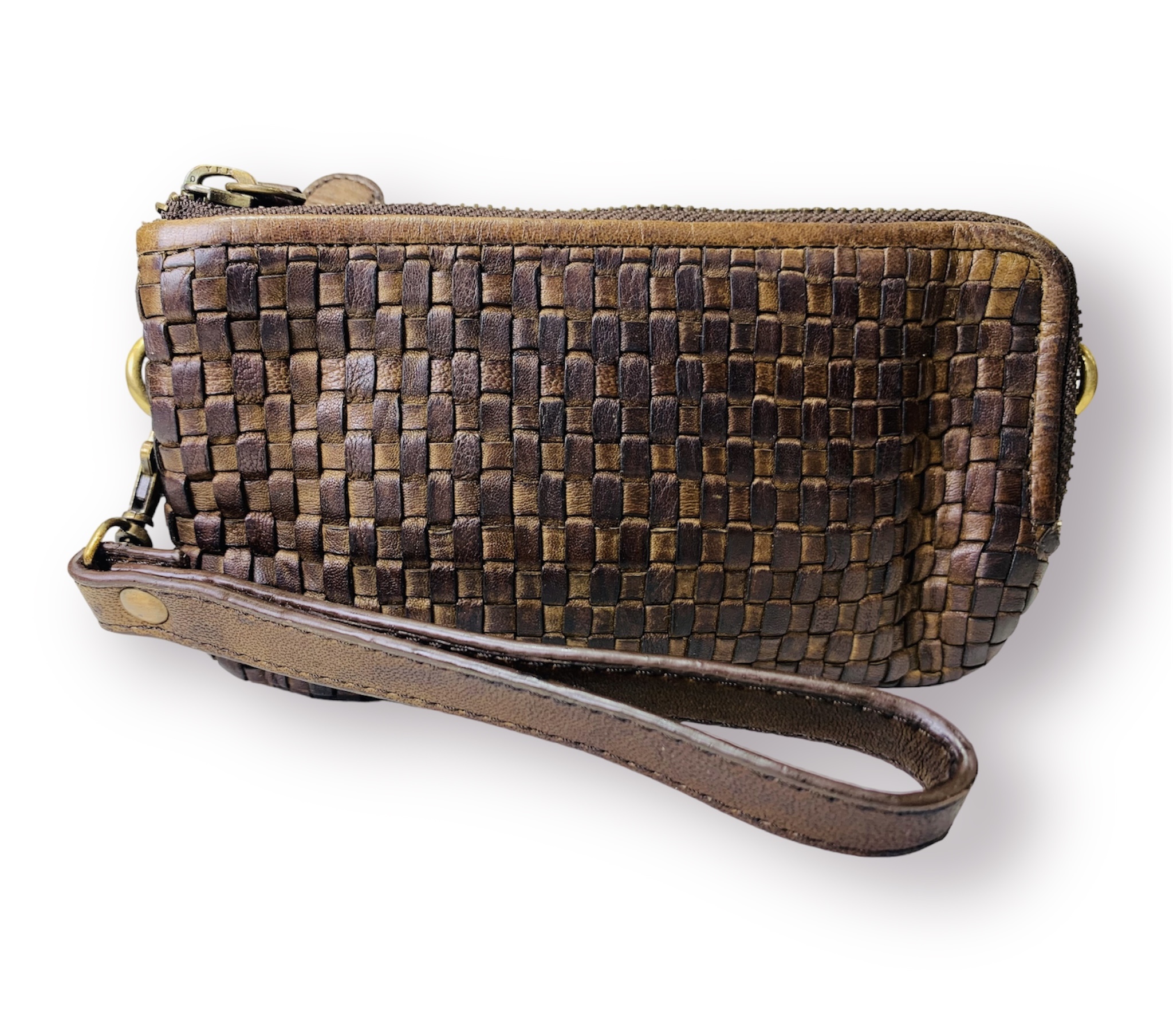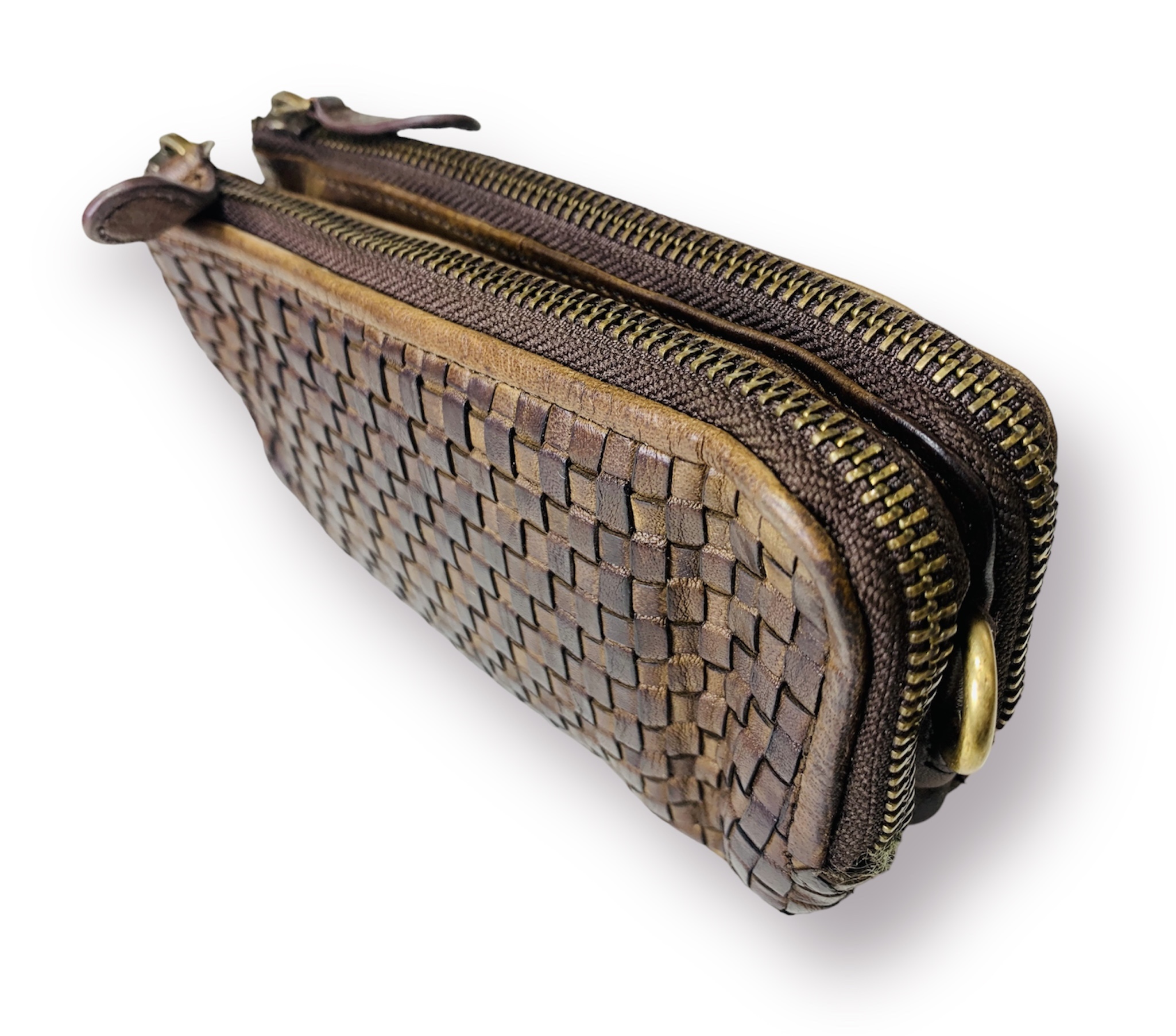 Fabricada a mano en suave cuero italiano vintage trenzado envejecido, nuestra nueva cartera, billetera, tarjetero es lo suficientemente espaciosa para su teléfono celular y tiene dos correa de cuero una de mano y otra para llevarla como bandolera. Sirve como bolso de mano para una salida nocturna.
