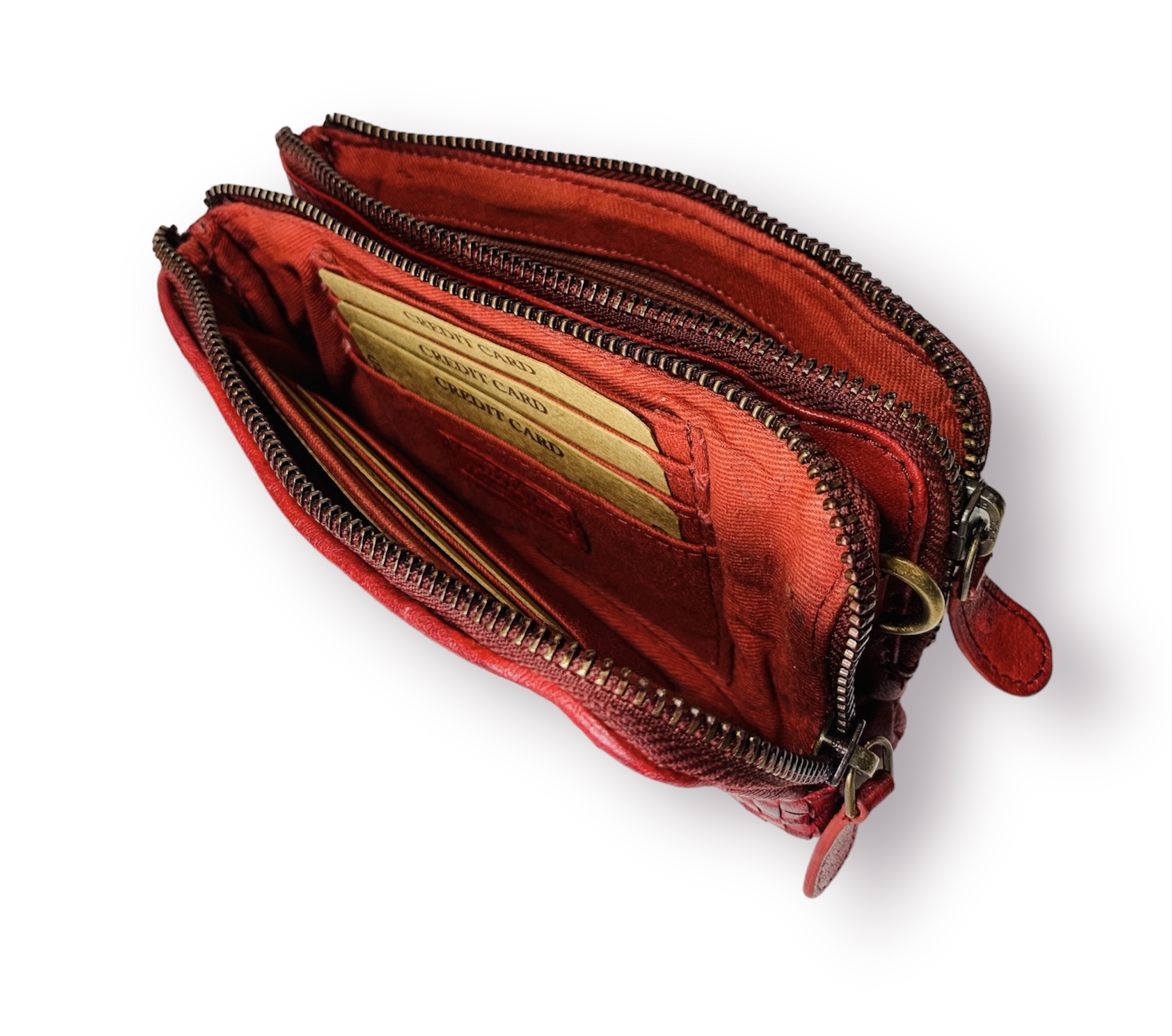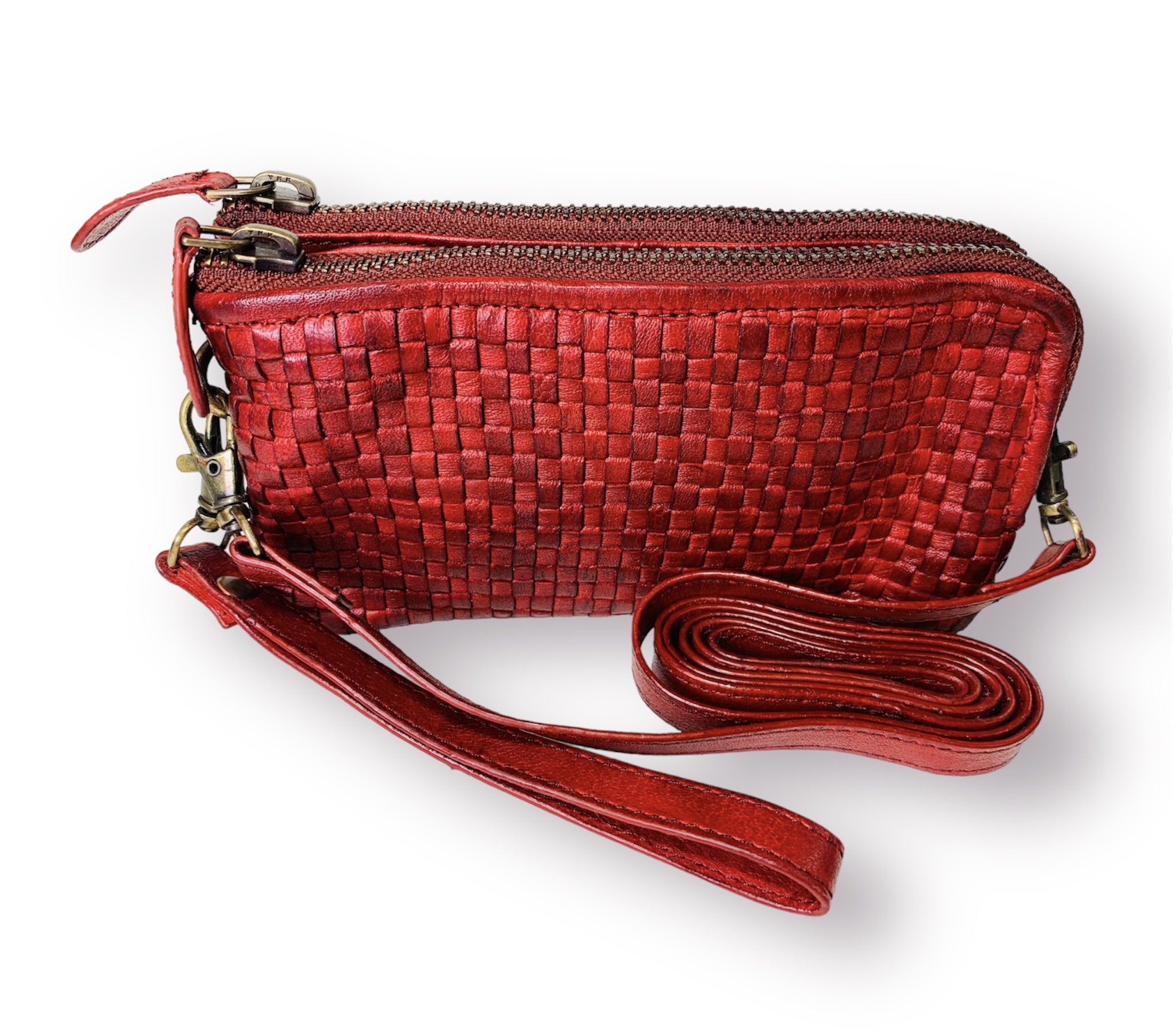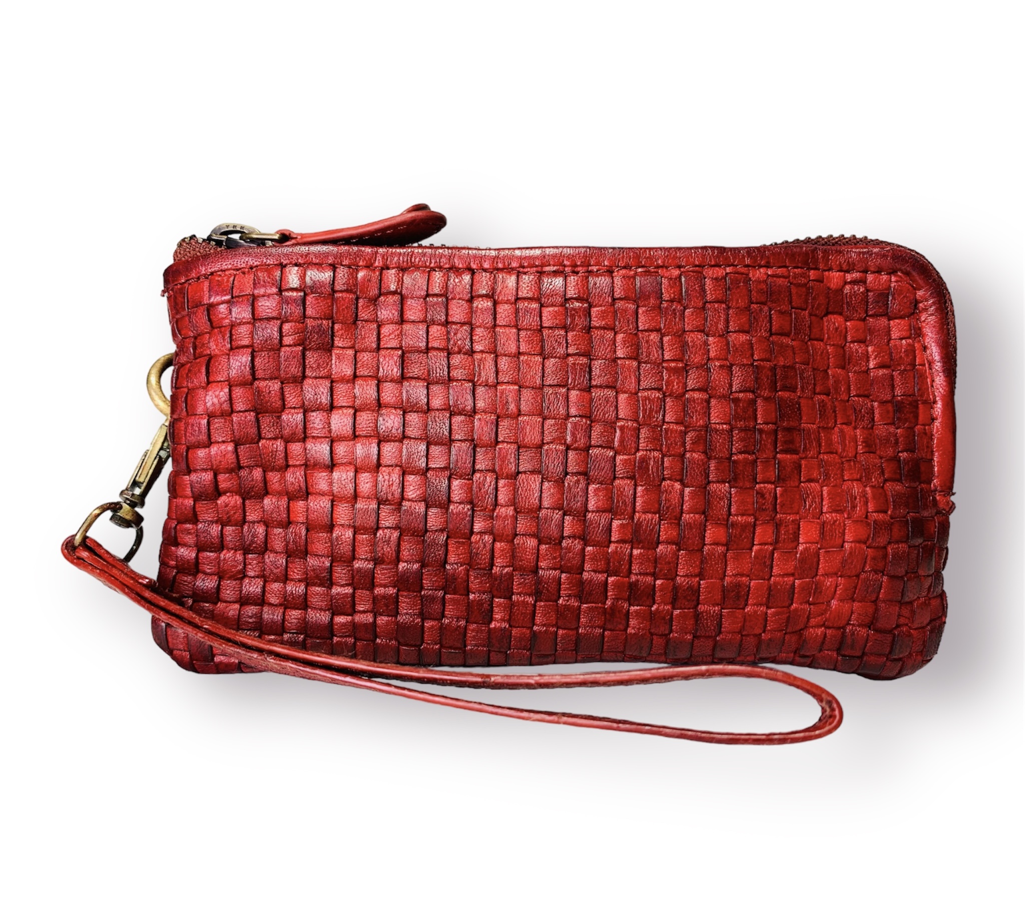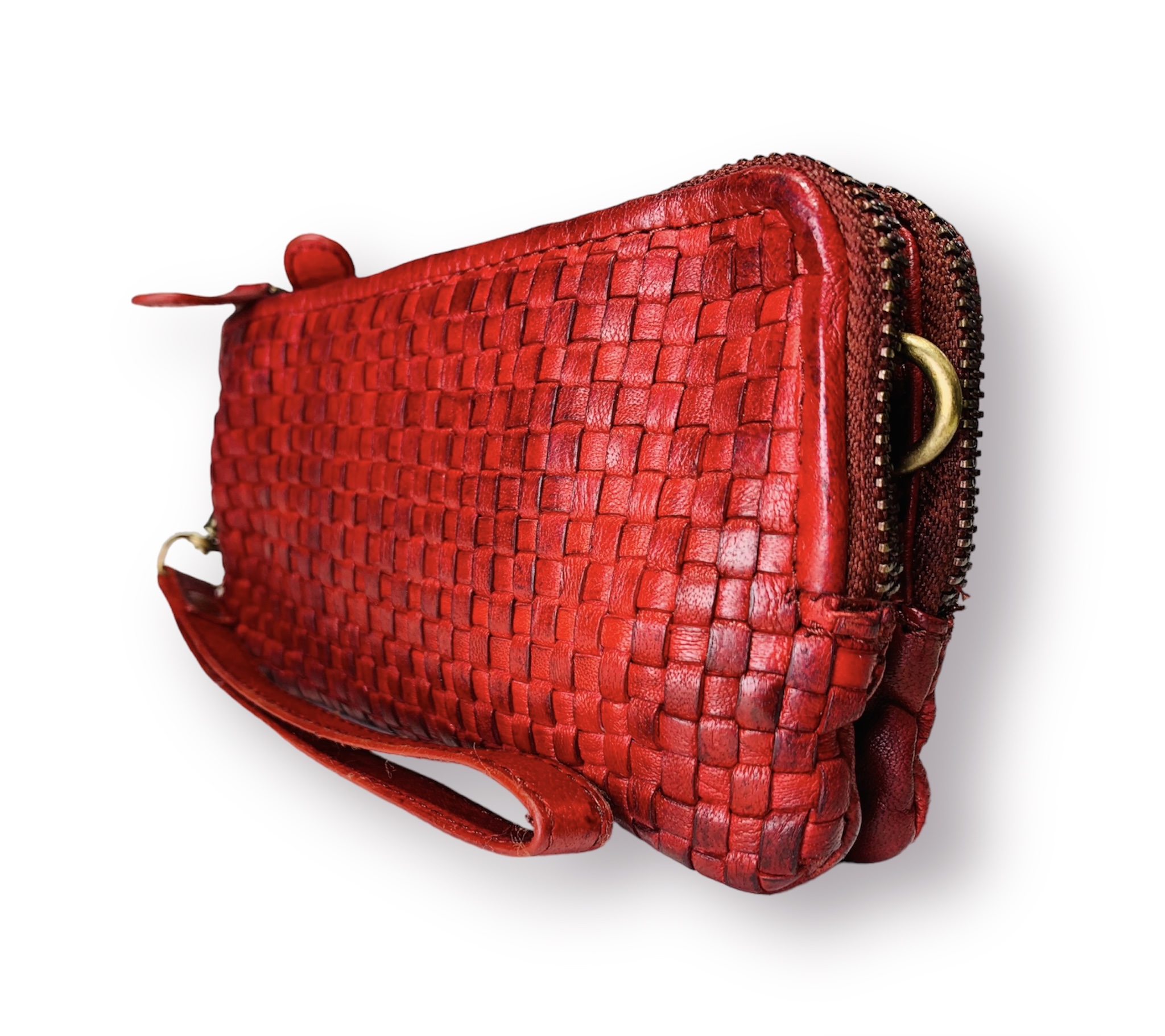 Fabricada a mano en suave cuero italiano vintage trenzado envejecido, nuestra nueva cartera, billetera, tarjetero es lo suficientemente espaciosa para su teléfono celular y tiene dos correa de cuero una de mano y otra para llevarla como bandolera. Sirve como bolso de mano para una salida nocturna.