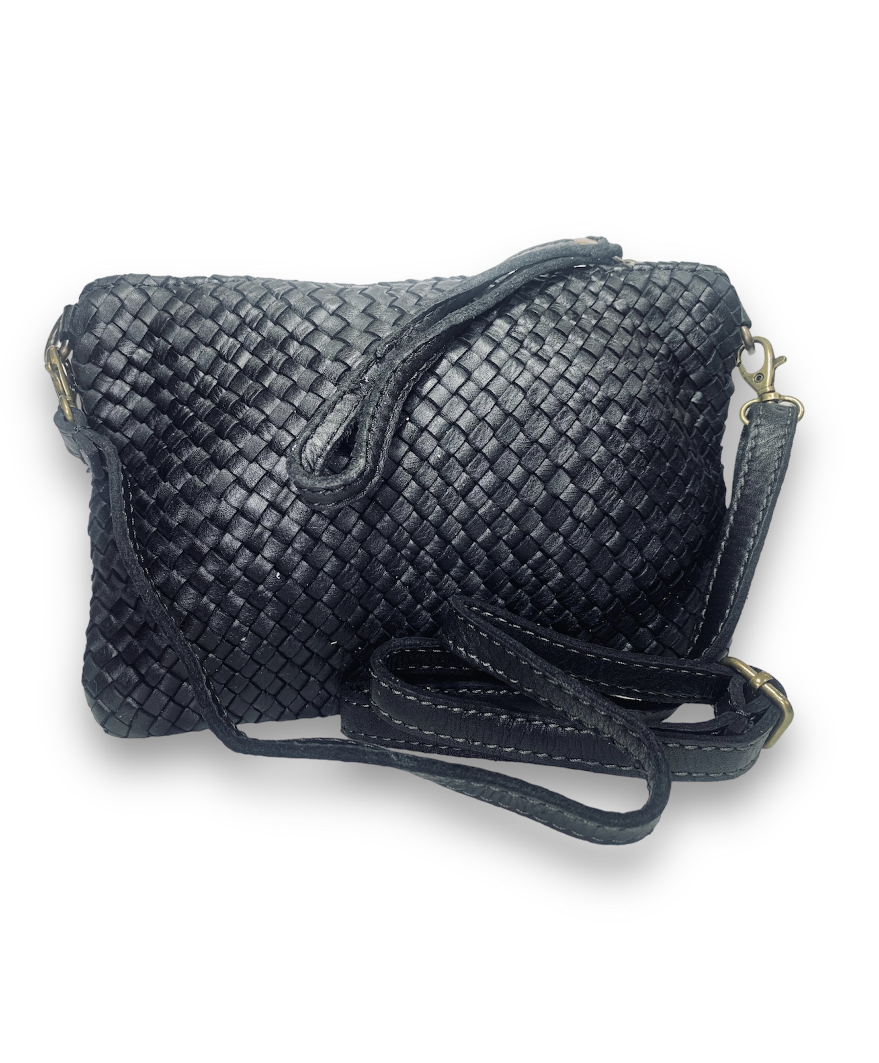 Sé el primero en valorar “Bolso de mano trenzado de piel italiano negro Zoe”