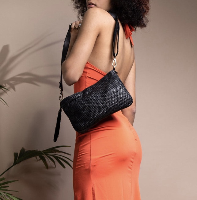 Bolso de mano trenzado de piel italiano negro Zoe