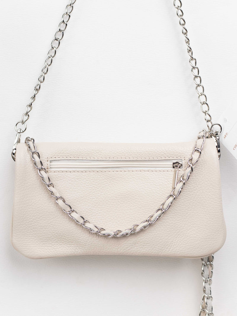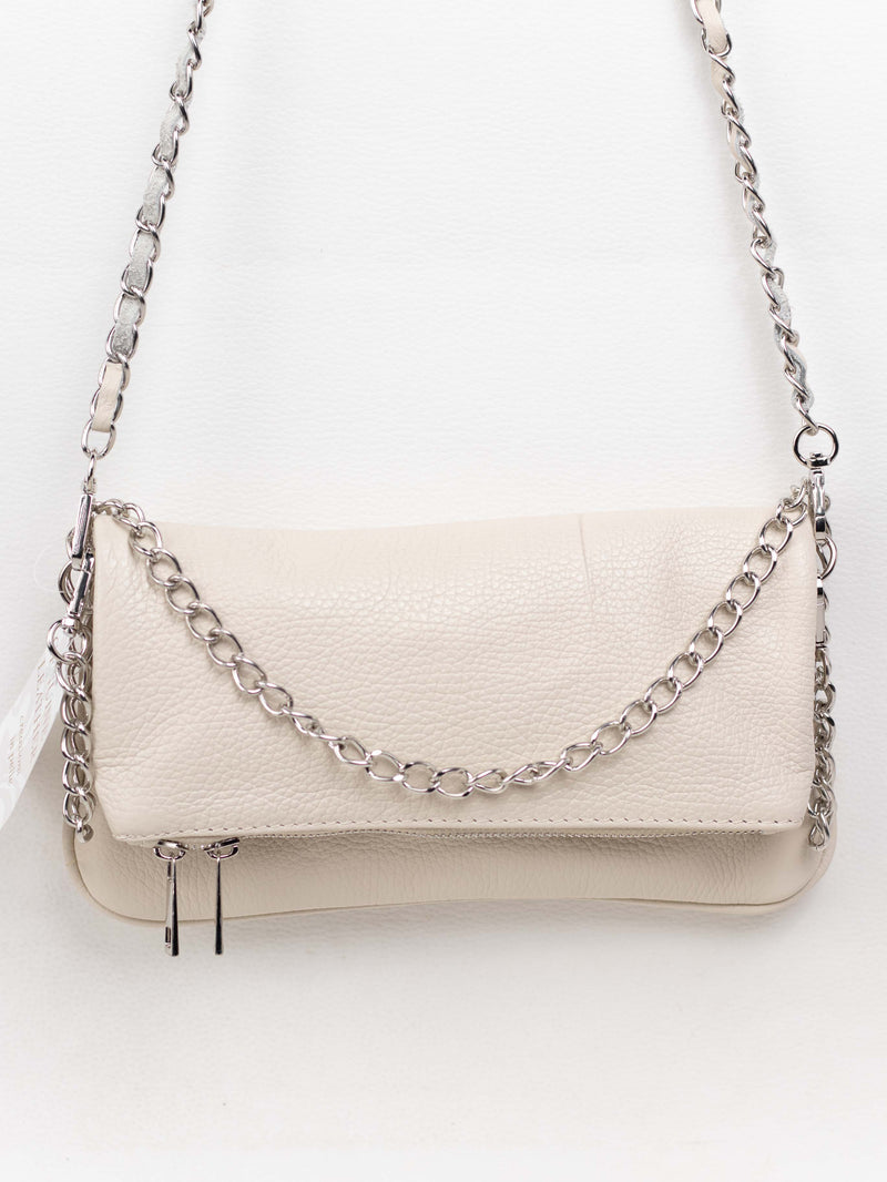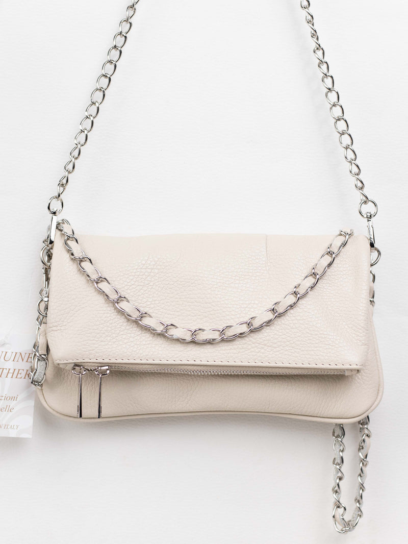 Ya sea colgado del hombro o cruzado gracias a sus asas de cadena larga y delgada, este bolso te ofrece la flexibilidad y el estilo que necesitas para complementar tu día a día con un toque de sofisticación italiana.