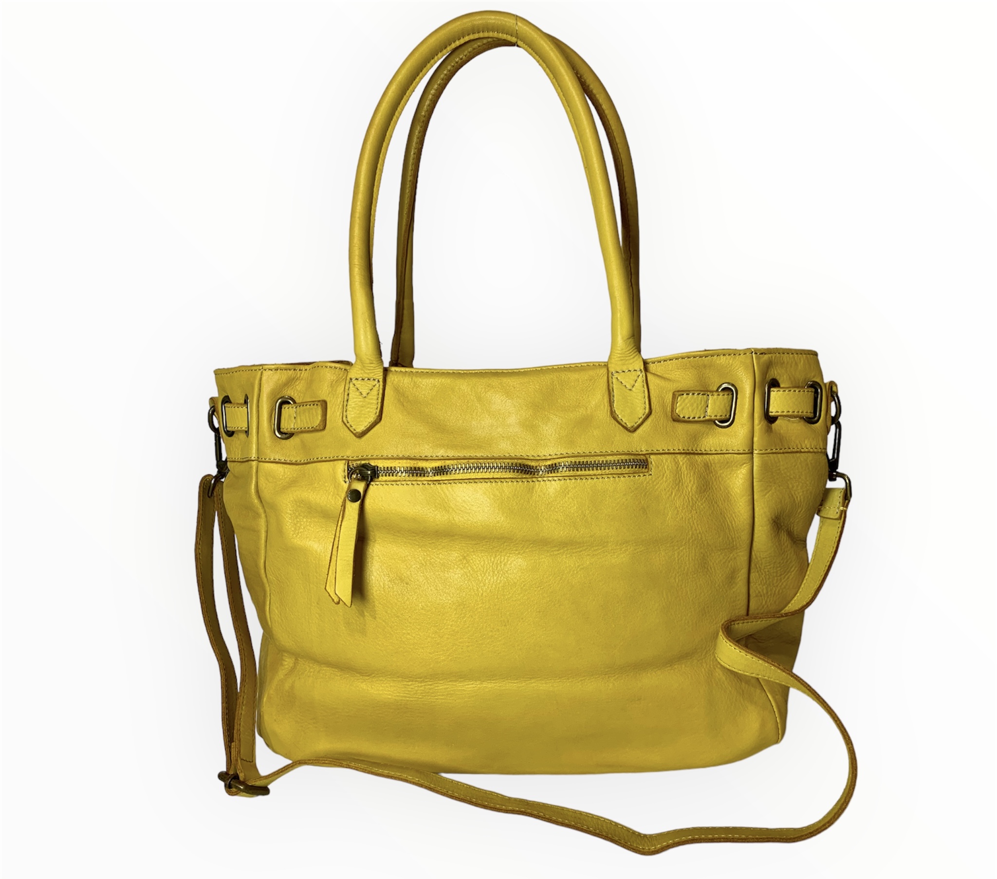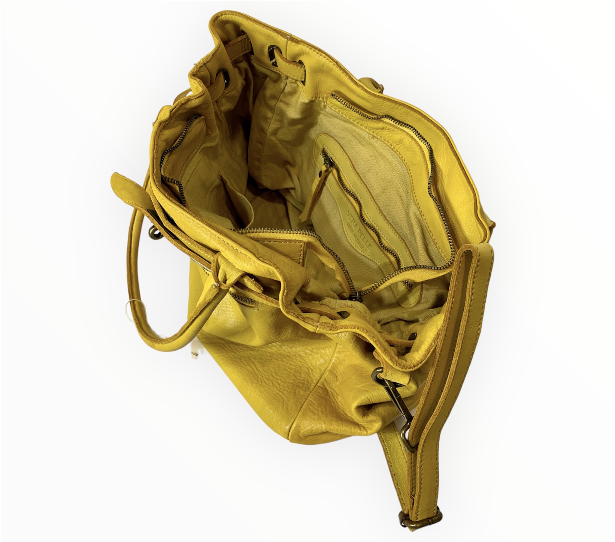Bolso italiano de piel lavada amarillo Francesca