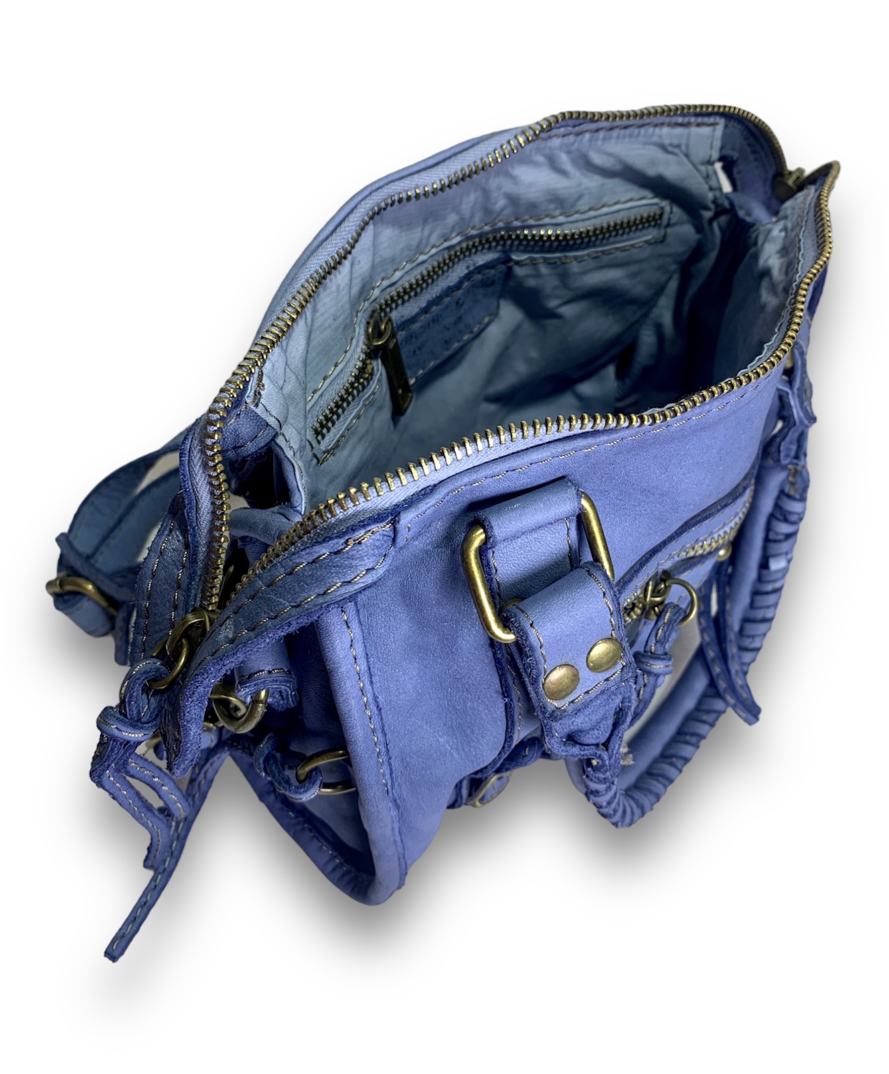 Nuestro Bolso de piel italiana, Hobo es un bolso y bandolera muy suave y holgado. El práctico bolsillo frontal con cremallera mantiene sus elementos esenciales al alcance de la mano. Perfecto tamaño mini para todos los días del año.