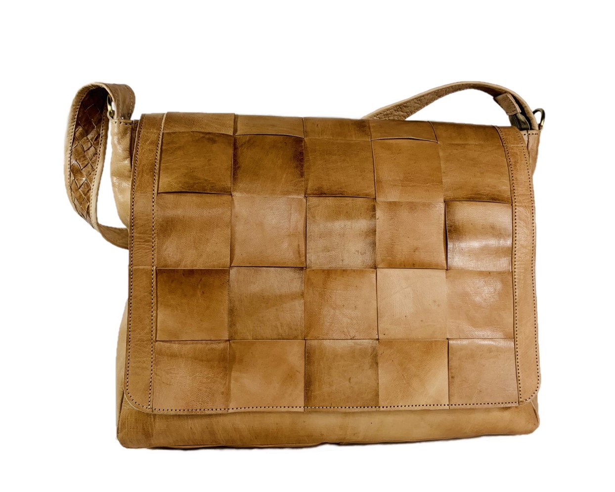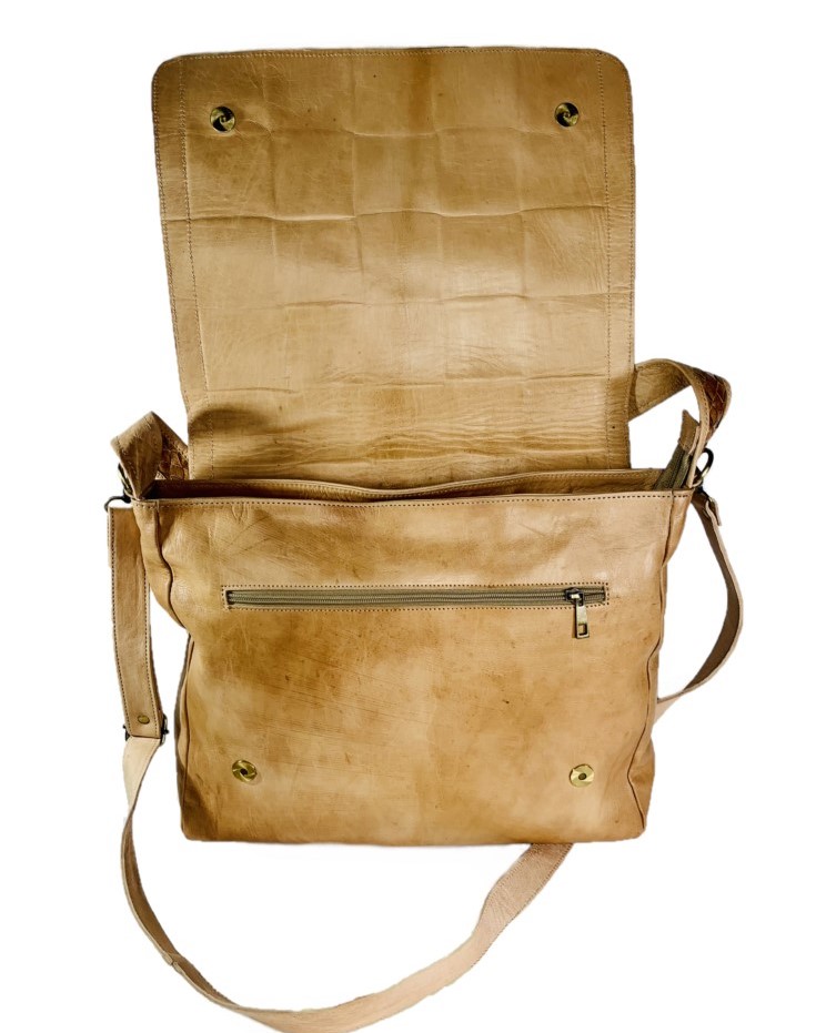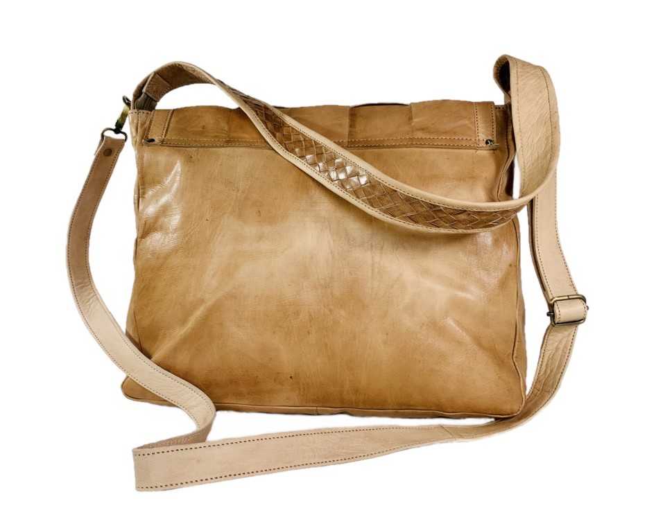 Este bolso de cuero mensajero confeccionado a mano, de estilo retro con un toque verdaderamente vintage.