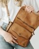Con detalles de tachuelas de latón envejecido en el cierre de la solapa superior, este bolso no solo es elegante, sino también práctico. Cuenta con múltiples bolsillos y secciones interiores para mantener tus pertenencias perfectamente organizadas en todo momento.