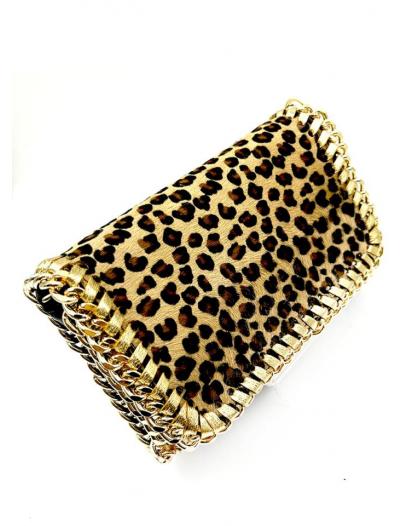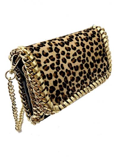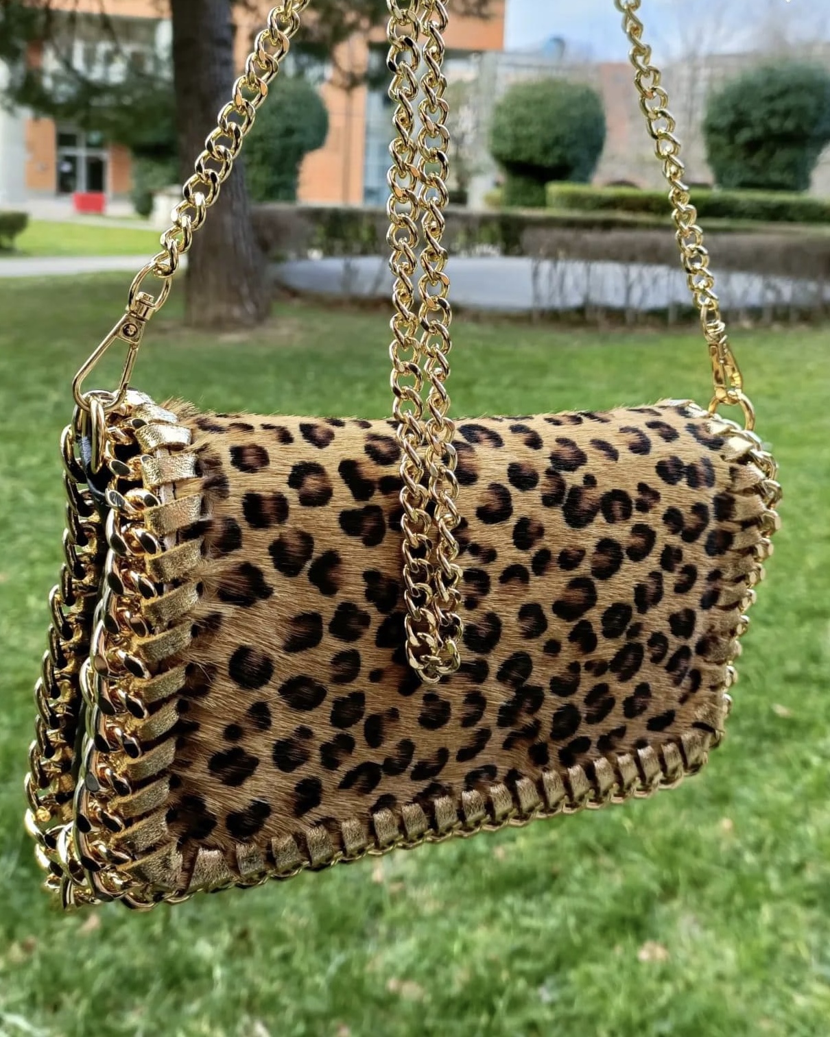 Bolso pequeño Italiano de Piel con Diseño Animal Print y Cadena Dorada para Mujer.