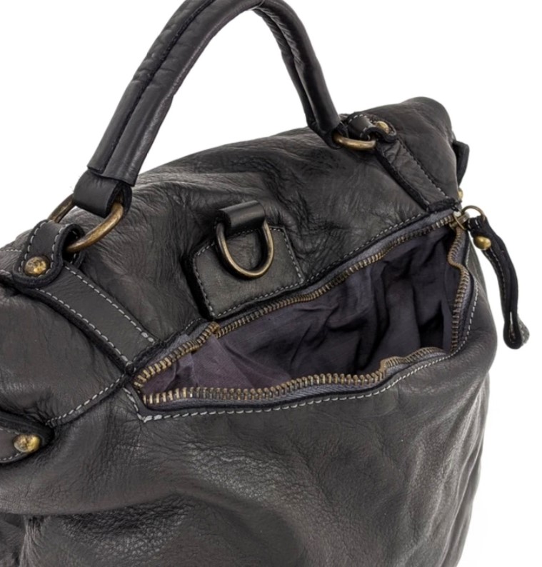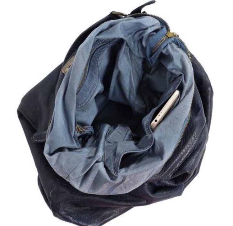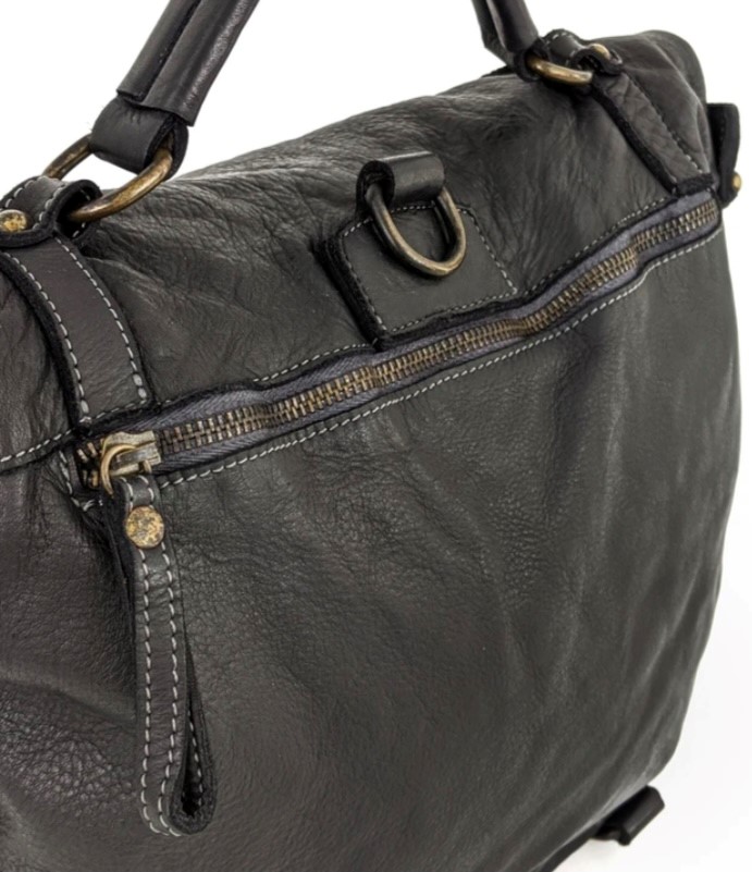 La mochila está hecha a mano con piel italiana vintage lavado suave con un elegante cierre de cremallera y clip de seguridad plegable.