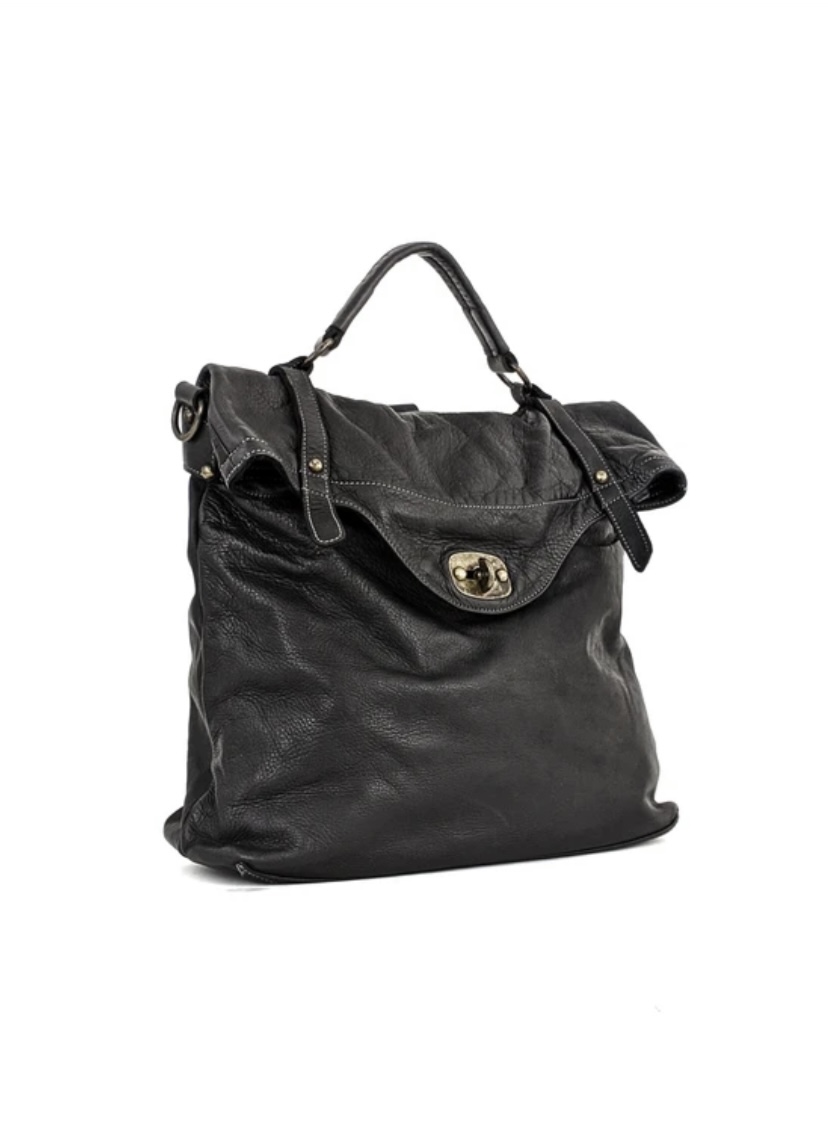 Bolso tipo mochila convertible de piel lavada en negro Oliver