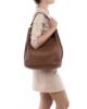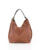 Su silueta amplia y desestructurada proporciona el espacio ideal para llevar cómodamente todos los imprescindibles del día a día, convirtiéndolo en el aliado perfecto para el trabajo, las compras o salidas informales. Las asas de piel en contraste, combinadas con herrajes en tono latón, aportan un toque refinado y garantizan un agarre cómodo y seguro. El cálido tono terroso del ante hace que combine fácilmente con cualquier look, del más casual al más sofisticado.