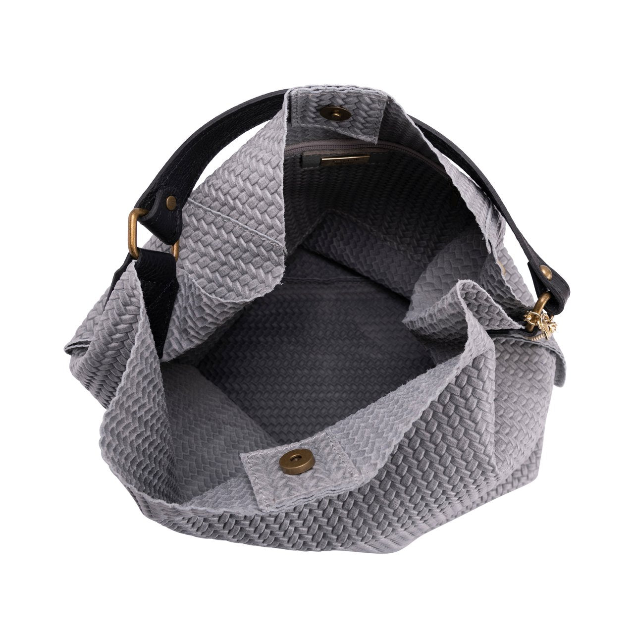 Este sofisticado bolso tote de piel de ante destaca por su textura tejida artesanal, que aporta profundidad, carácter y un aire atemporal. Confeccionado en ante genuino de alta calidad, su acabado suave y flexible ofrece una sensación premium y un estilo elegante sin esfuerzo.