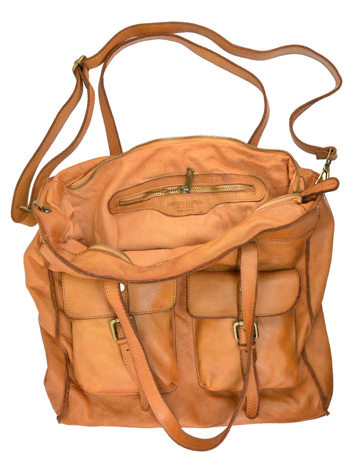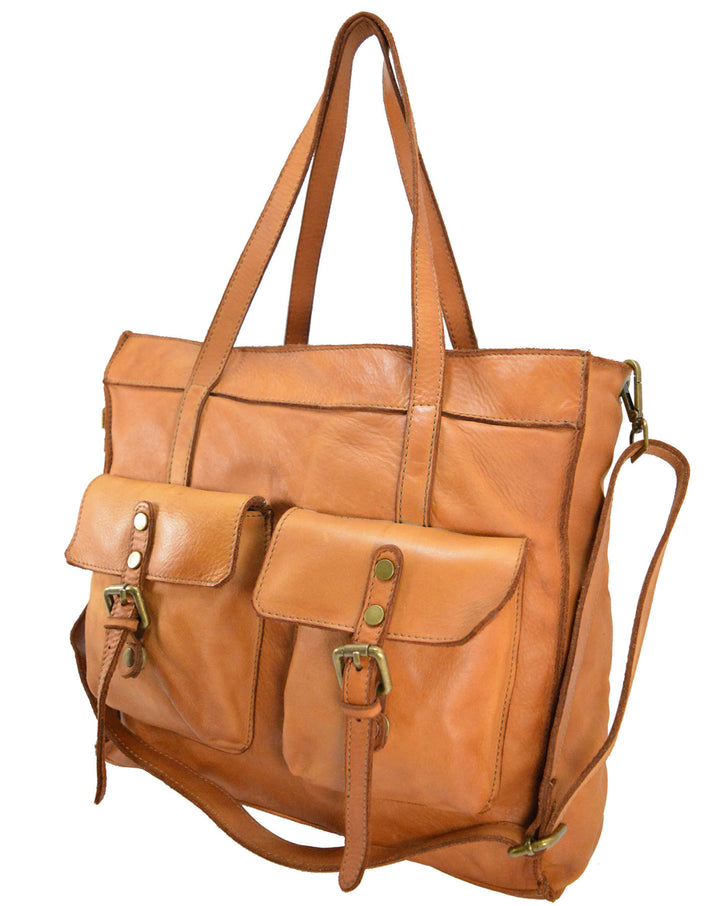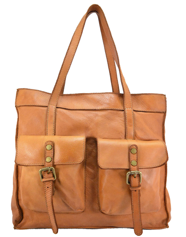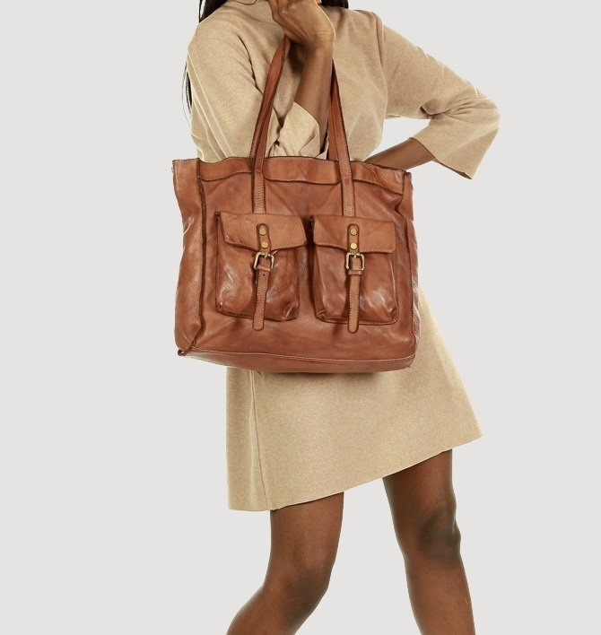 Sé el primero en valorar “Bolso tote unisex camel en piel lavada Nash”