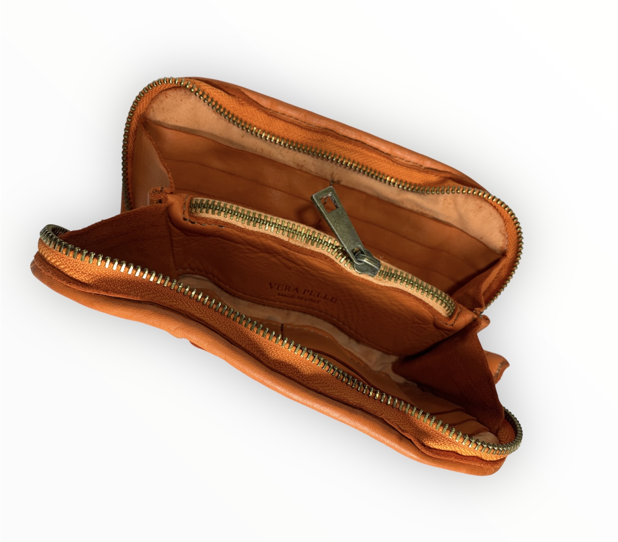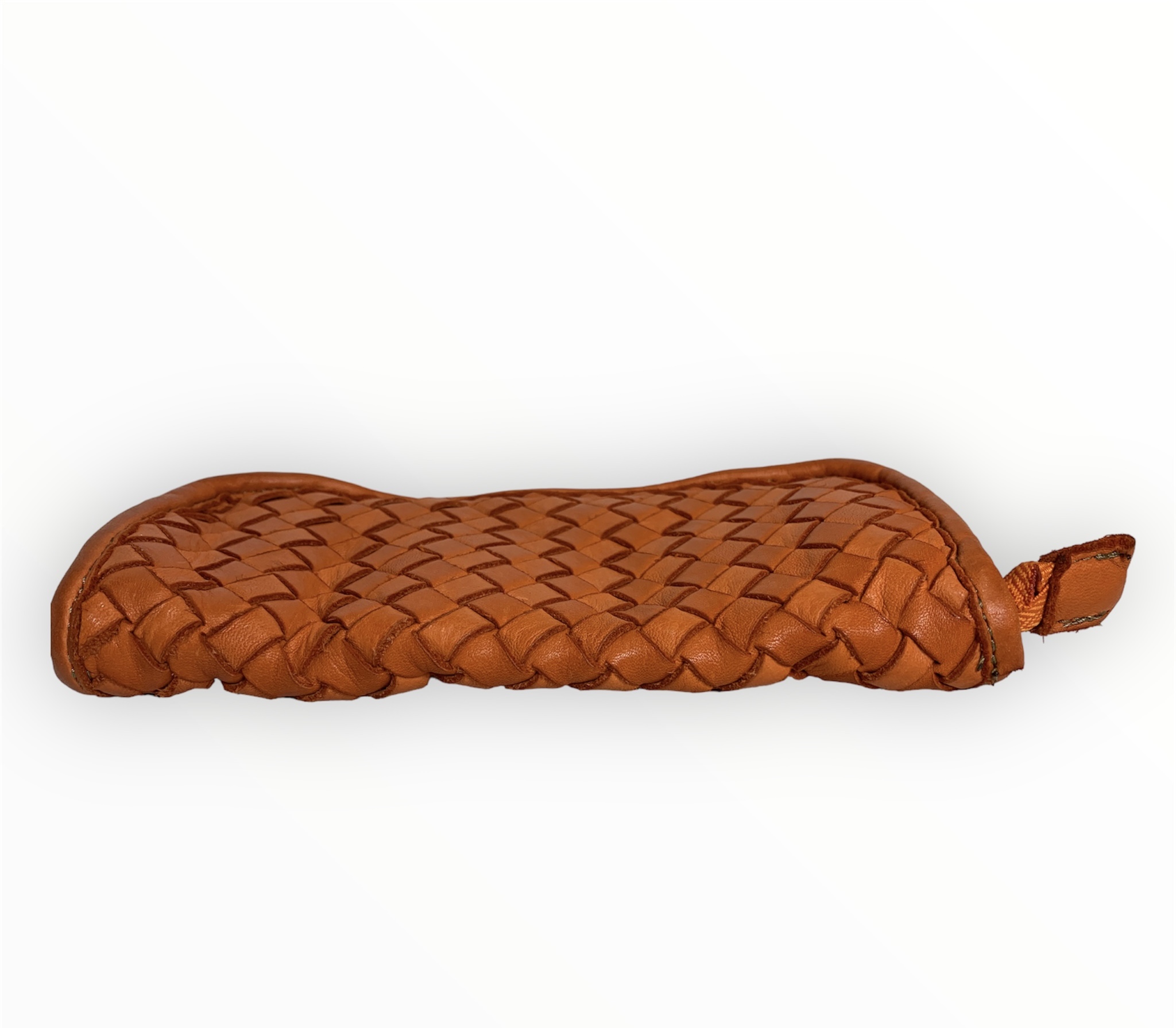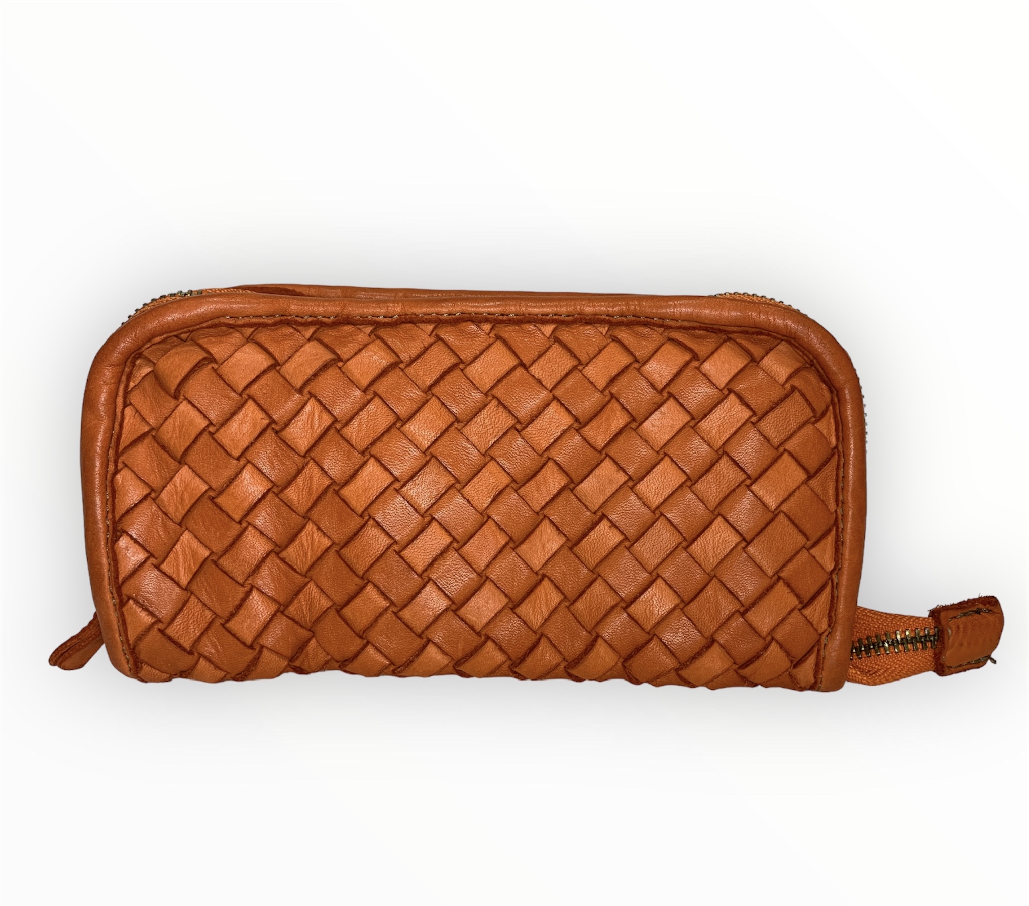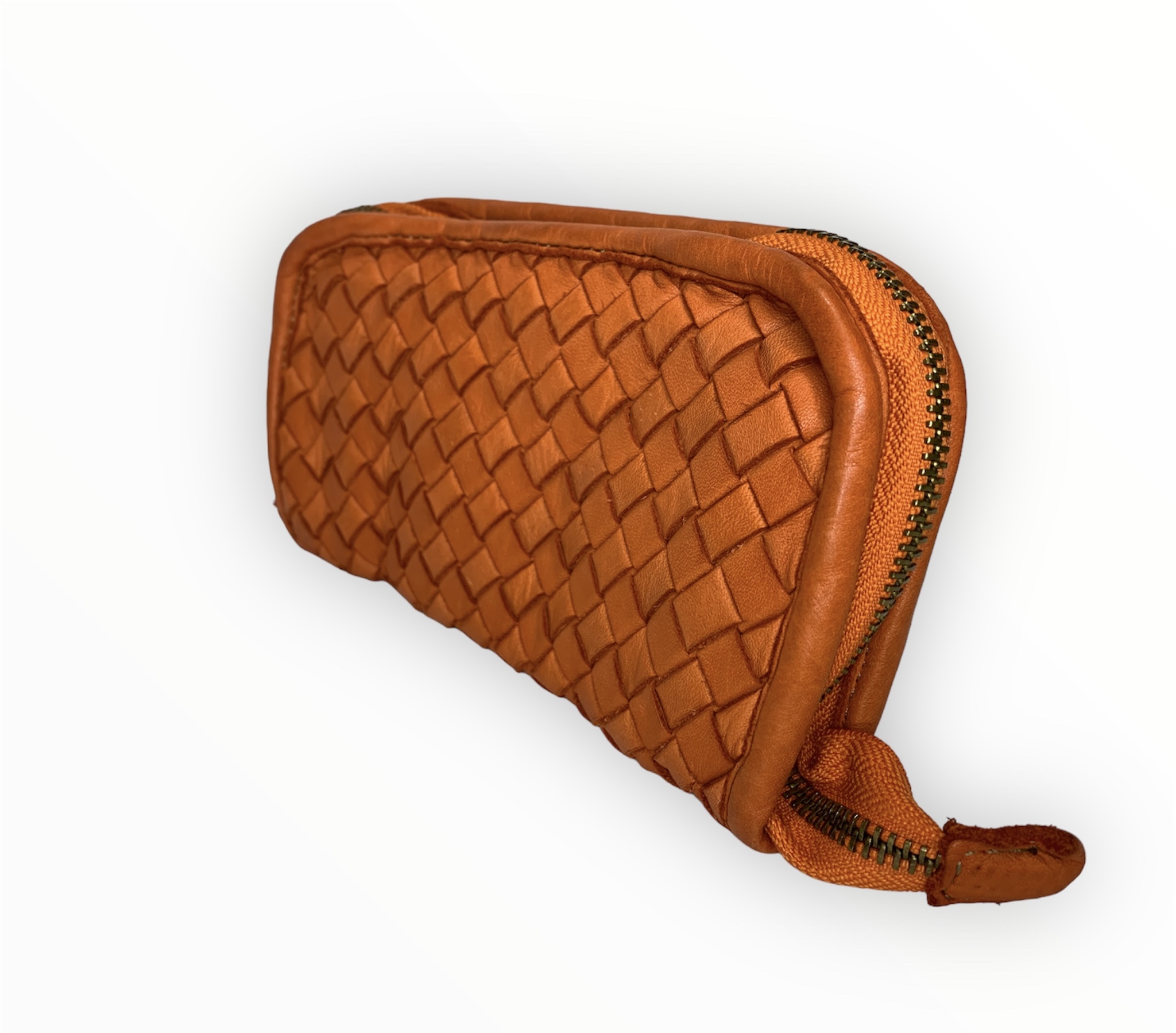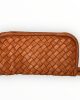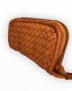 Cartera billetera trenzada de piel lavada en naranja