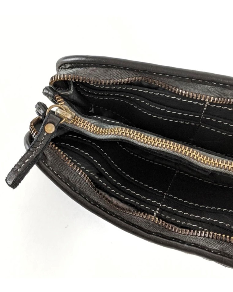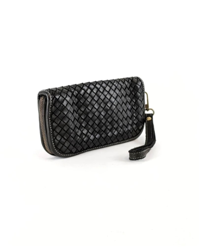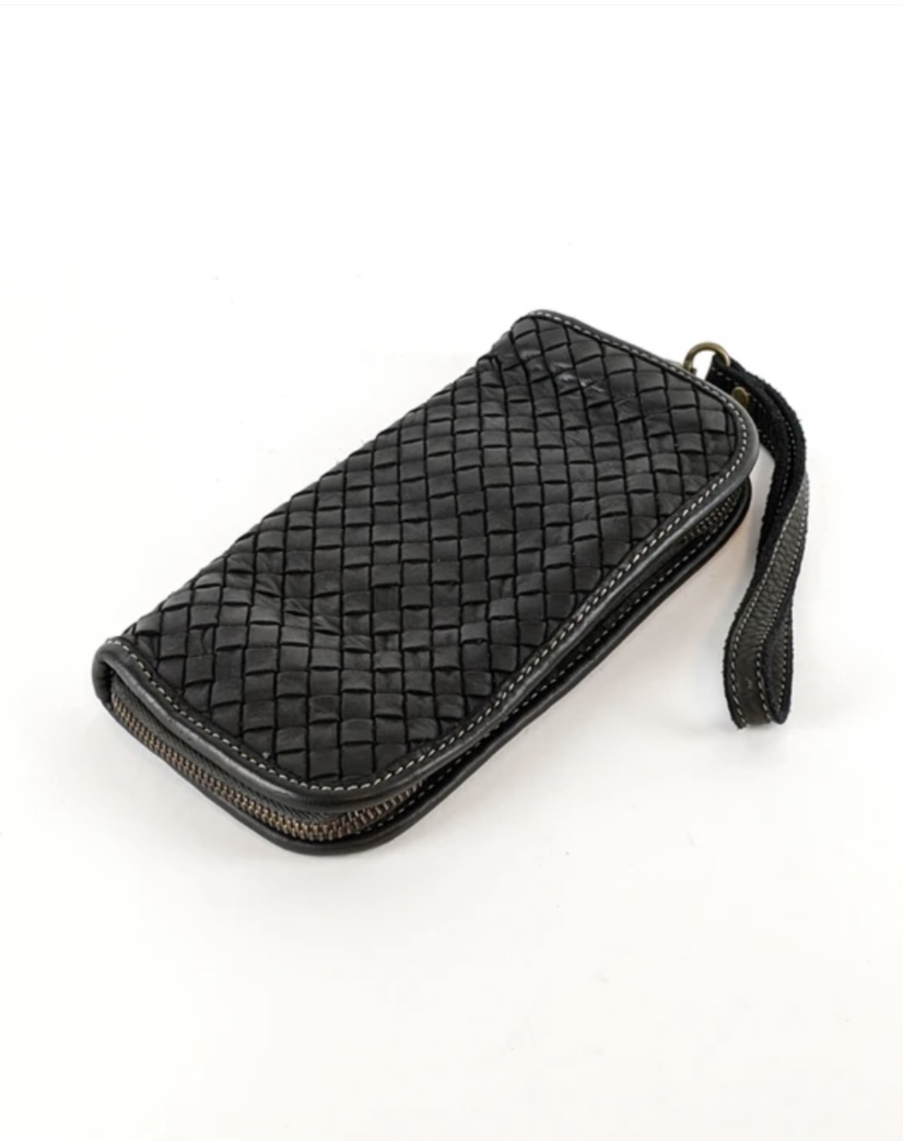 Cartera billetera trenzada de piel lavada en negro Axel