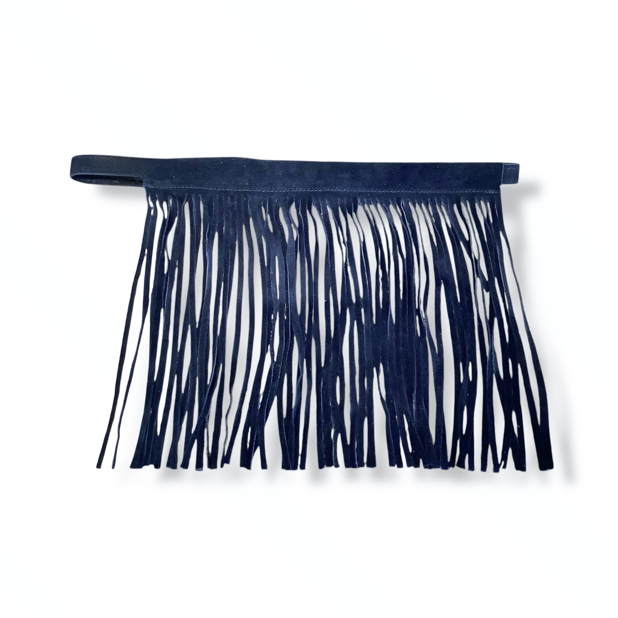 El cinturón en ante de cuero con flecos largos hecho a mano para darle un toque estilo cowboy.