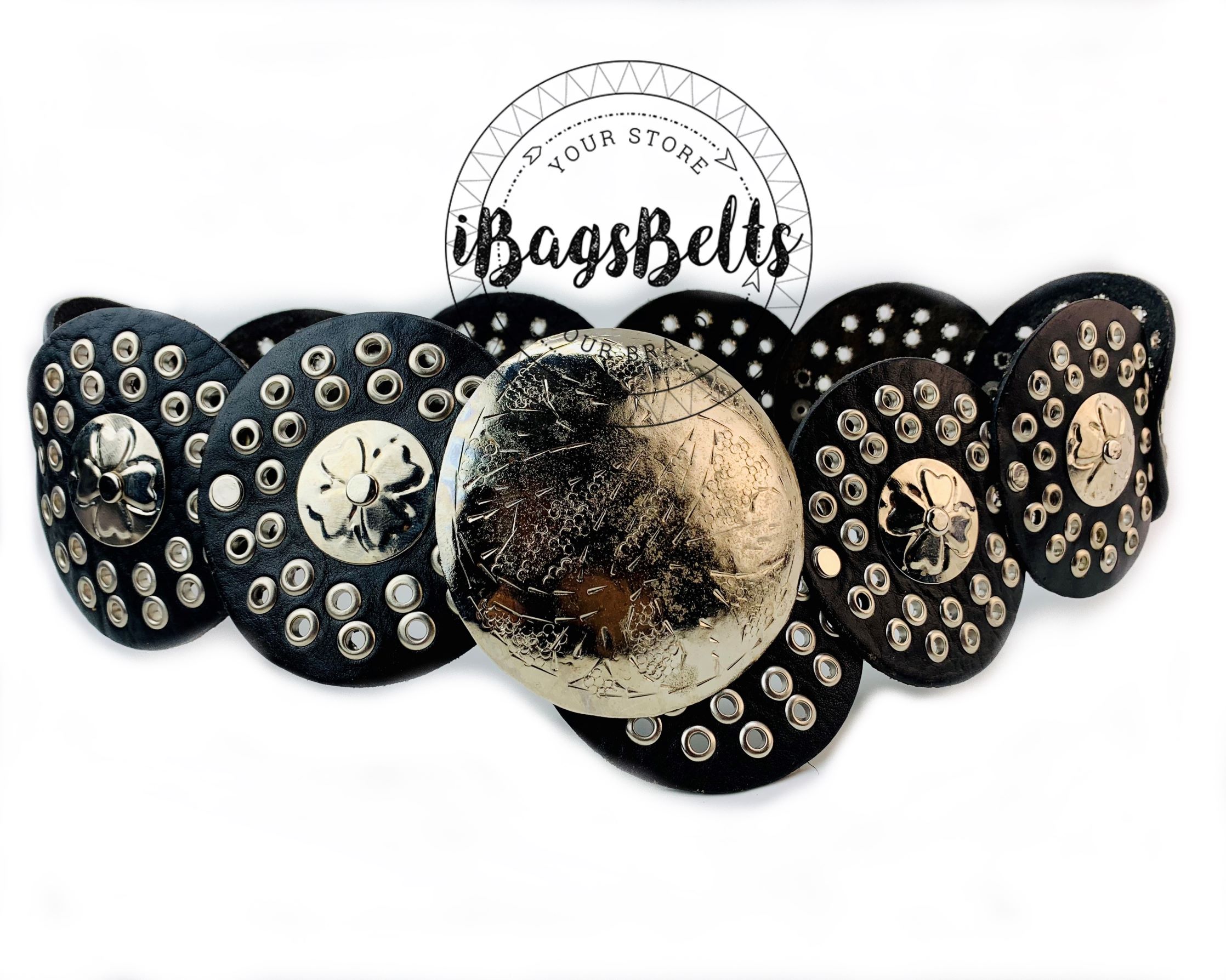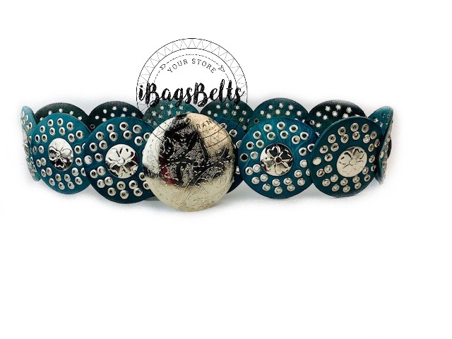 1. Correa Decorada con Remaches y Círculos: La decoración con remaches y círculos puede agregar un toque único y llamativo al cinturón.