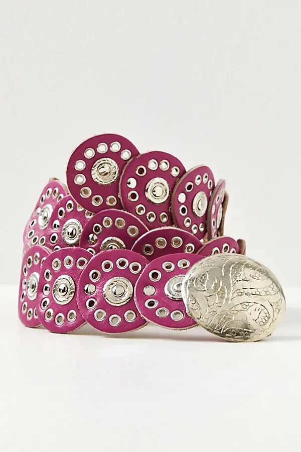 - Correa Decorada con Remaches y Círculos: La decoración con remaches y círculos puede agregar un toque único y llamativo al cinturón.