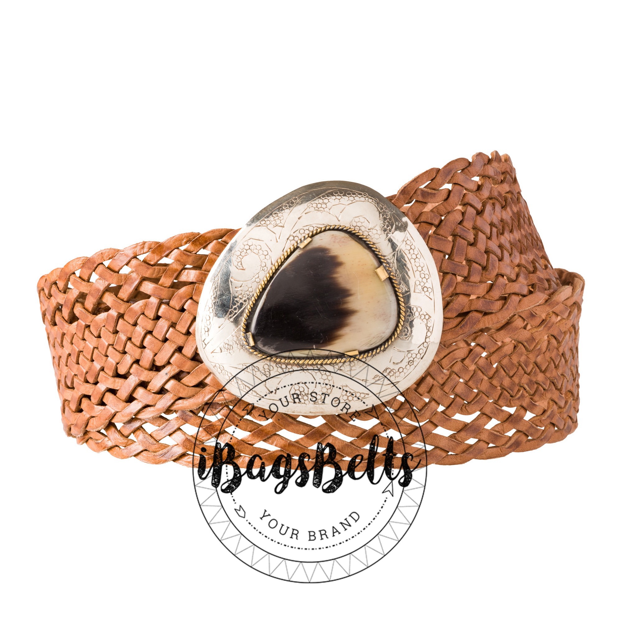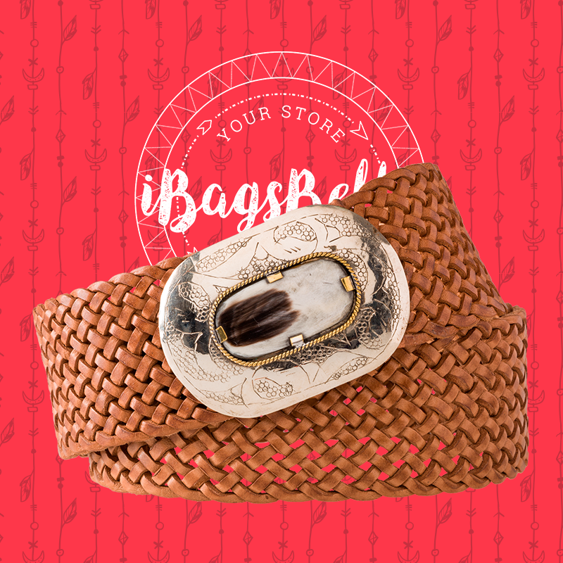 Añade un toque artesanal y libre a tus looks con este cinturón de cuero trenzado a mano, diseñado para mujeres con alma bohemia. Su hebilla decorativa de hueso con detalles metálicos en tono plata lo convierte en una pieza original y con personalidad.