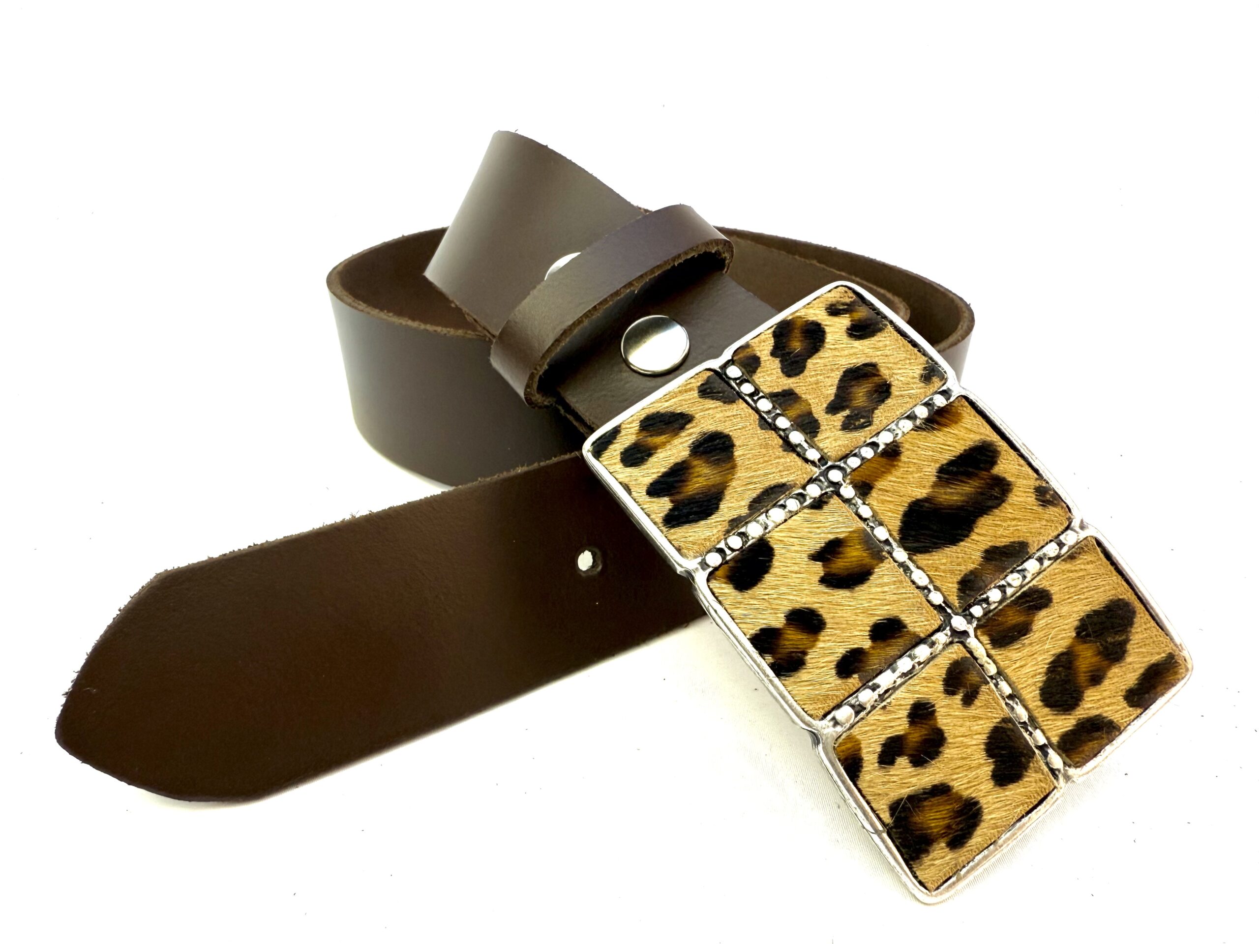 Sé el primero en valorar “Cinturón de piel liso con hebilla animal print Leopardo”