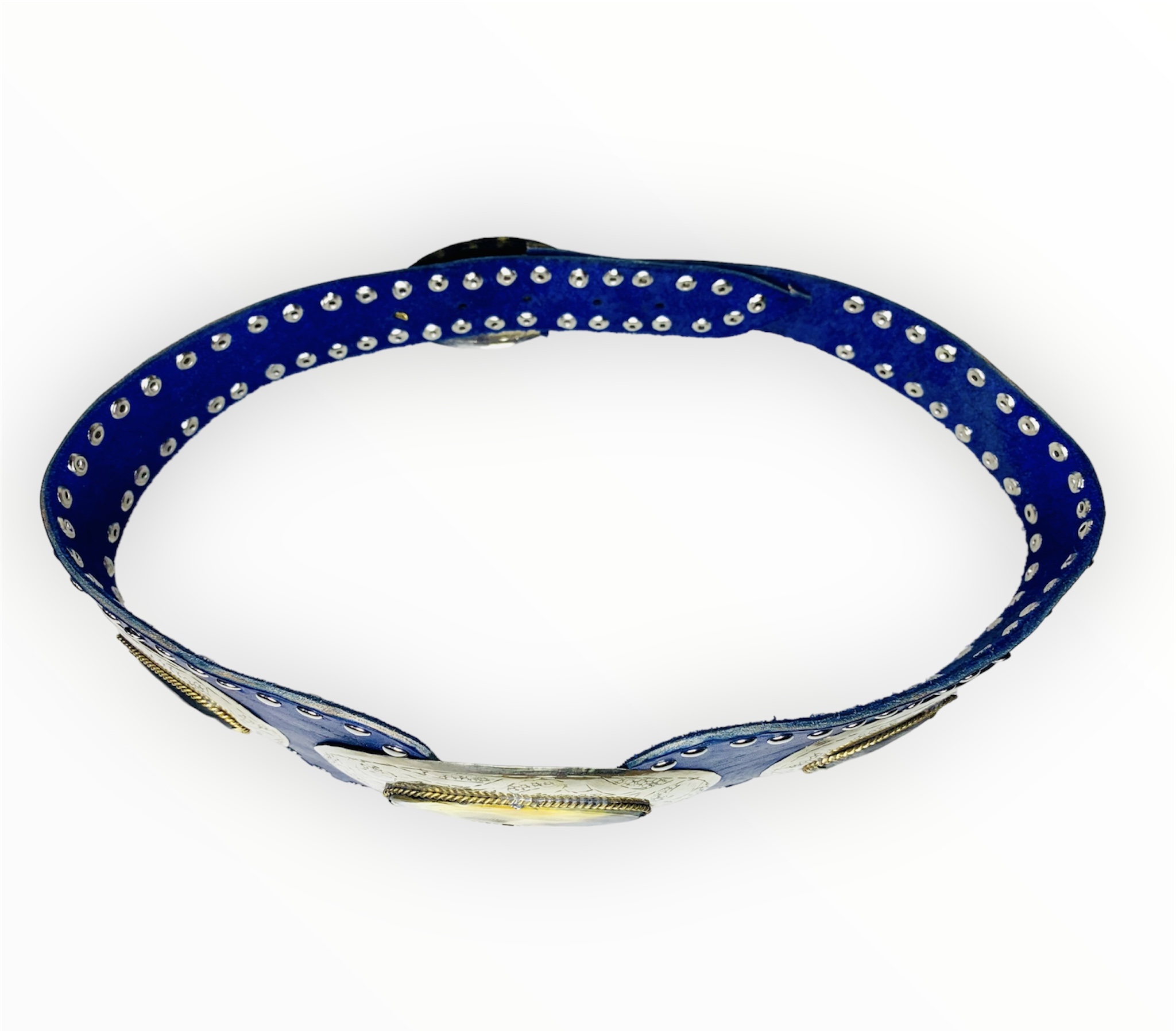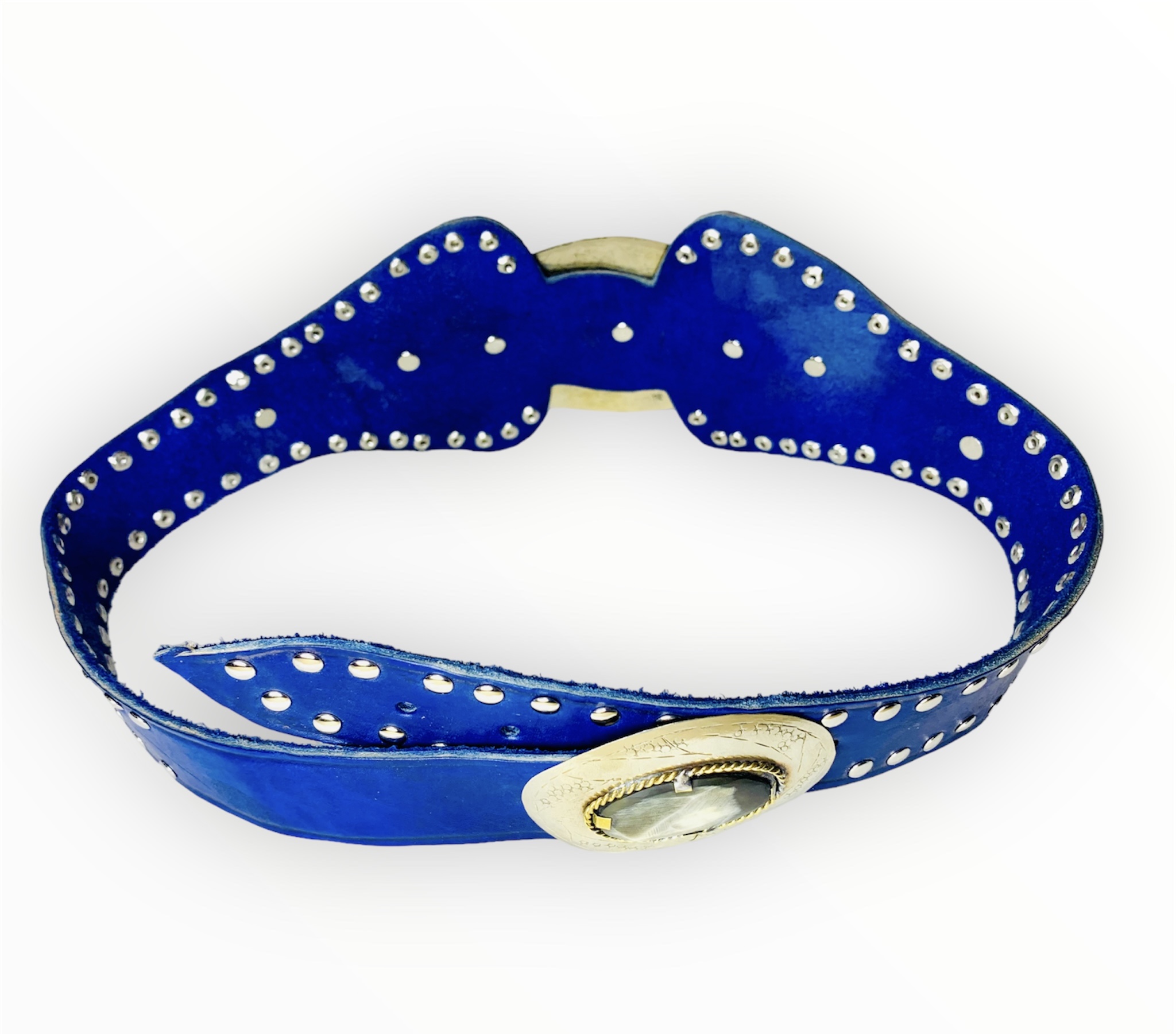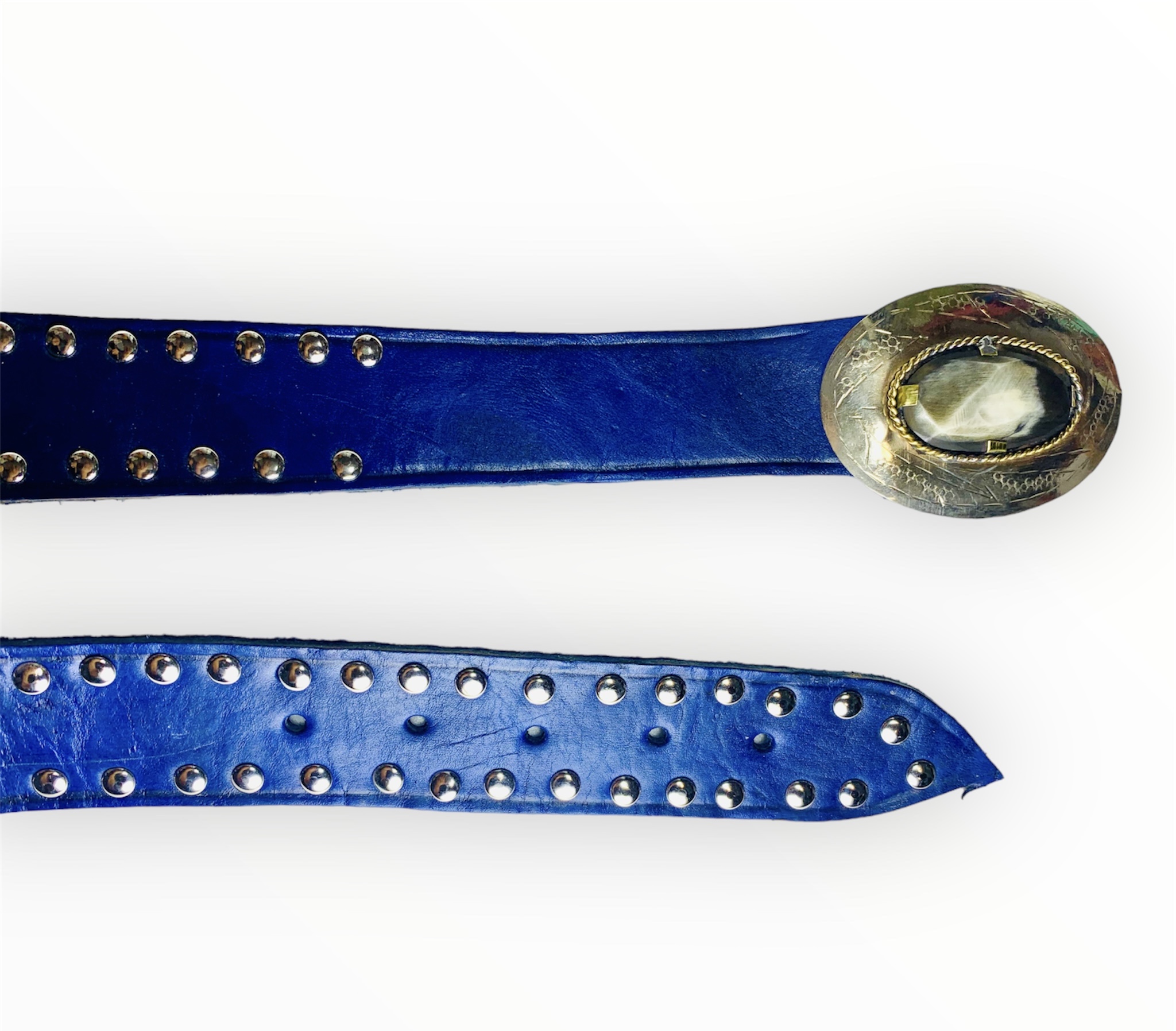 También con una fila de tachas por todo el, que combina el cuero liso con las tachas plateadas dándole un estilo cowboy
