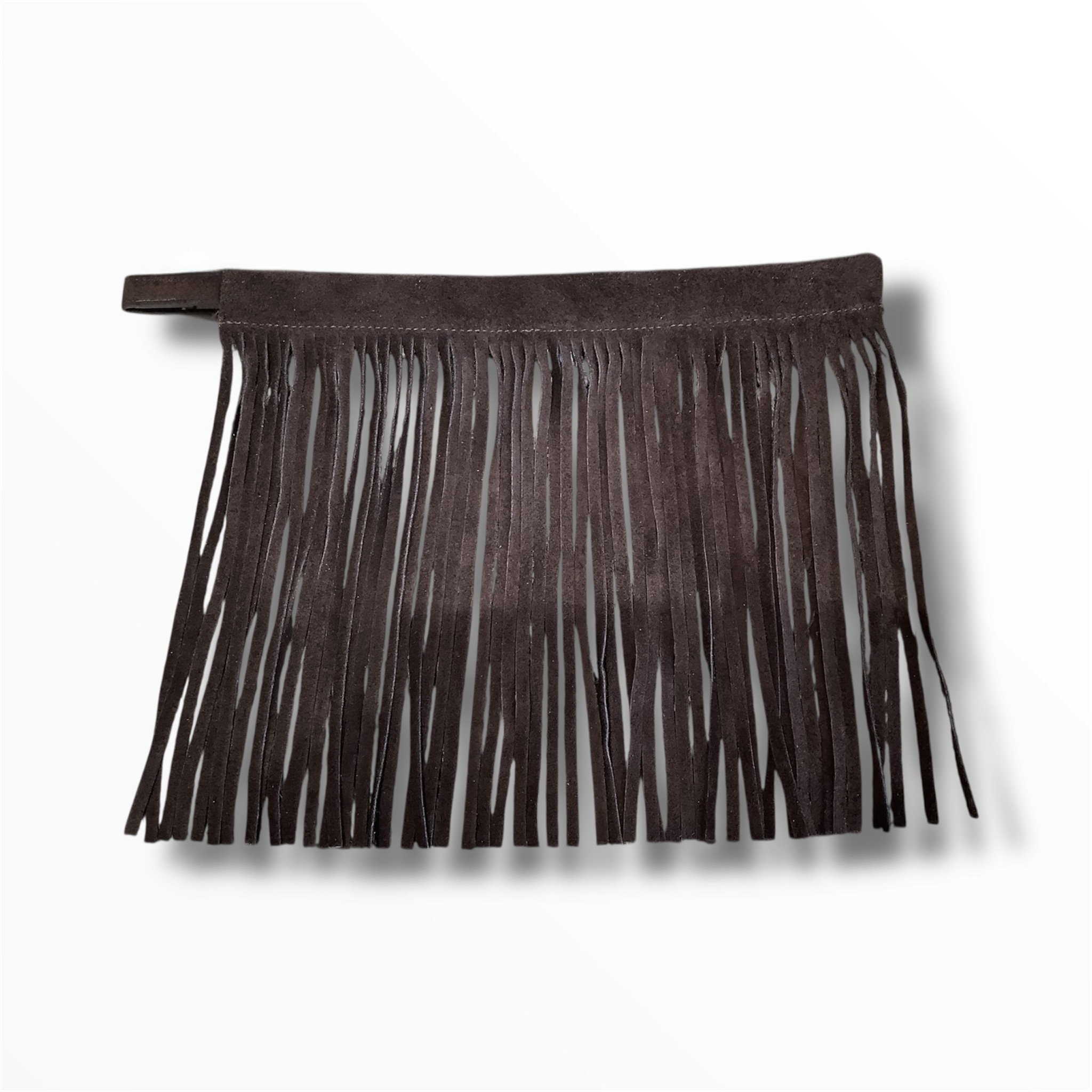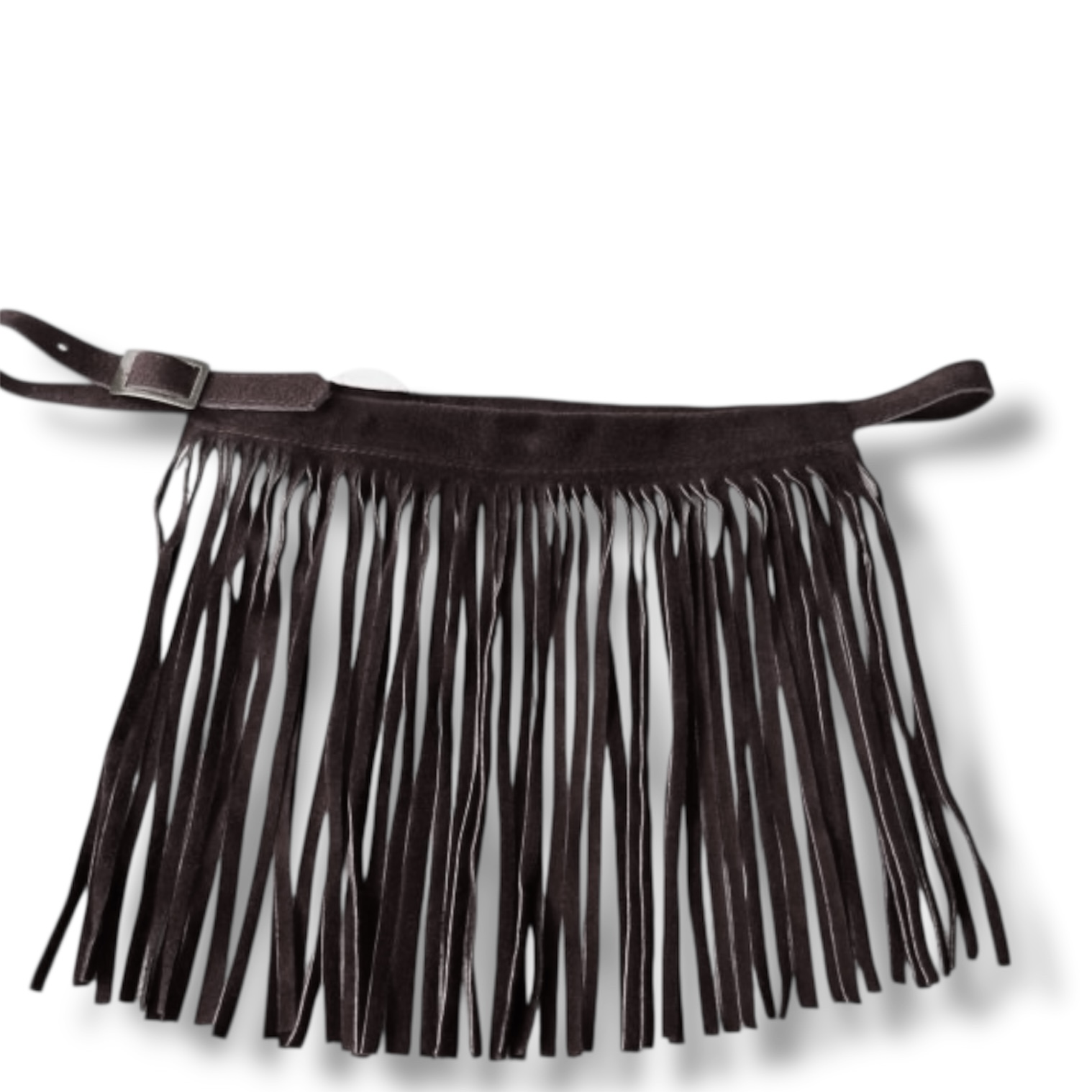 El cinturón en ante de cuero con flecos largos hecho a mano para darle un toque estilo cowboy.