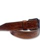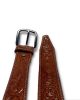 El cinturón hecho en cuero envejecido sin forro. estampado a maquina con tintes antiguos y luego tallado a mano con un diseño floral clásico del oeste, también se muestra la costura a lo largo del cinturón. Para la costura utilizamos un hilo resistente y refinado por mercerización. Gracias a la tapa de rosca, el cinturón también se puede acortar individualmente.