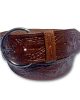 El cinturón hecho en cuero envejecido sin forro. estampado a maquina con tintes antiguos y luego tallado a mano con un diseño floral clásico del oeste, también se muestra la costura a lo largo del cinturón. Para la costura utilizamos un hilo resistente y refinado por mercerización. Gracias a la tapa de rosca, el cinturón también se puede acortar individualmente.