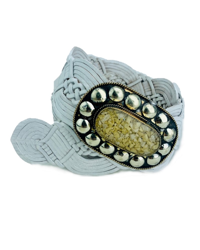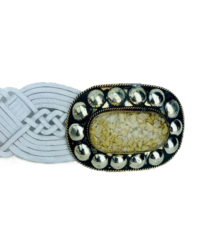 Cinturón trenzado con hebilla artesanal blanco o