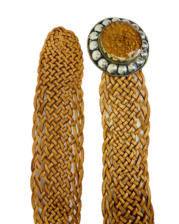 El cinturón está hecho de cuero trenzado a mano de forma artesanal , el material es muy fuerte y promete una larga vida del producto, por su curtido tradicional.