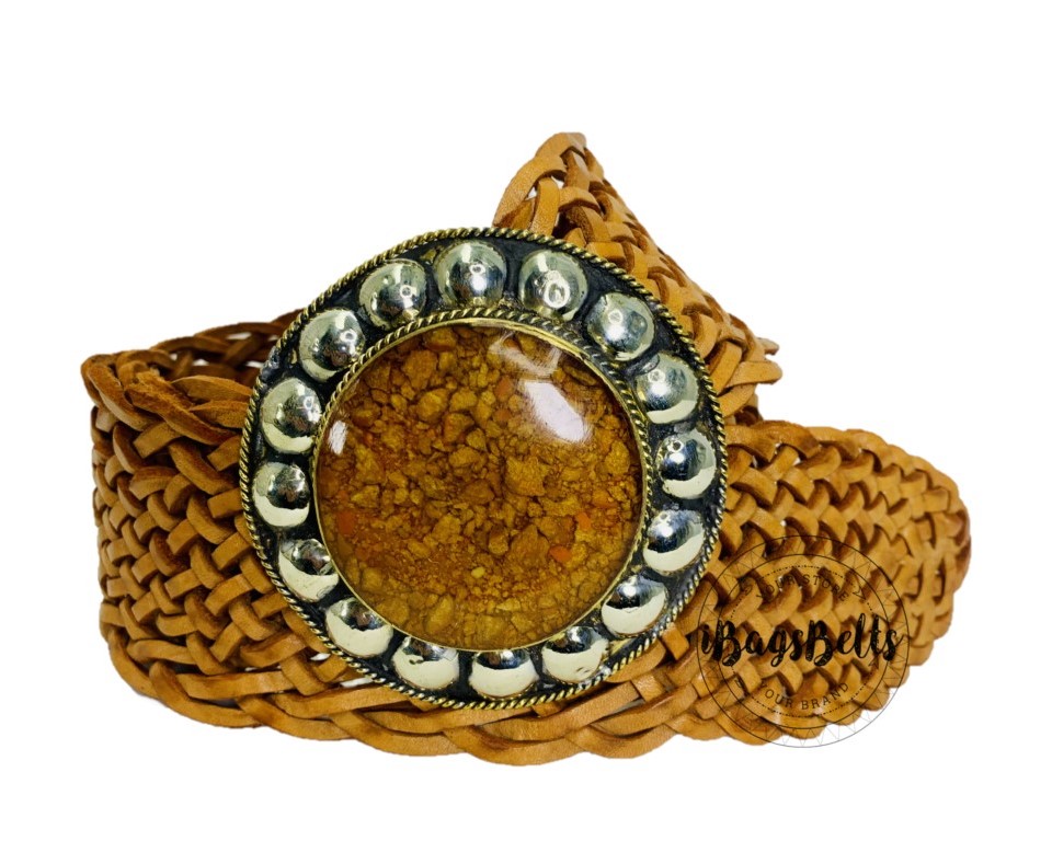 Cinturón trenzado con hebilla artesanal naranja r Coachella