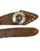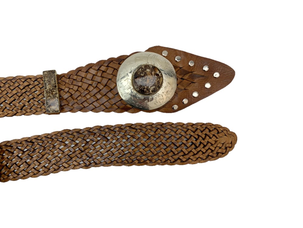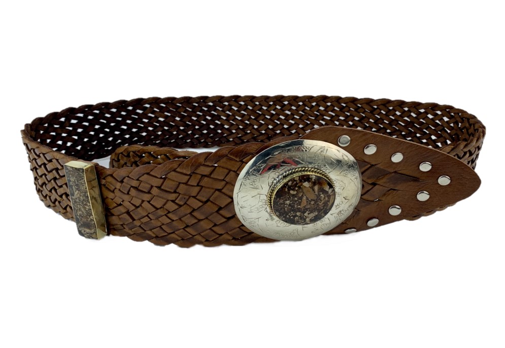 Destaca tu estilo con nuestro fajín ancho de cuero, una pieza única trenzada a mano y cortada de manera irregular para añadir un toque distintivo a tu look. Confeccionado con cuero de la más alta calidad y un cierre de hebilla artesanal, este fajín es la opción perfecta para resaltar tu cintura y lucir tu vestido favorito con elegancia y sofisticación.