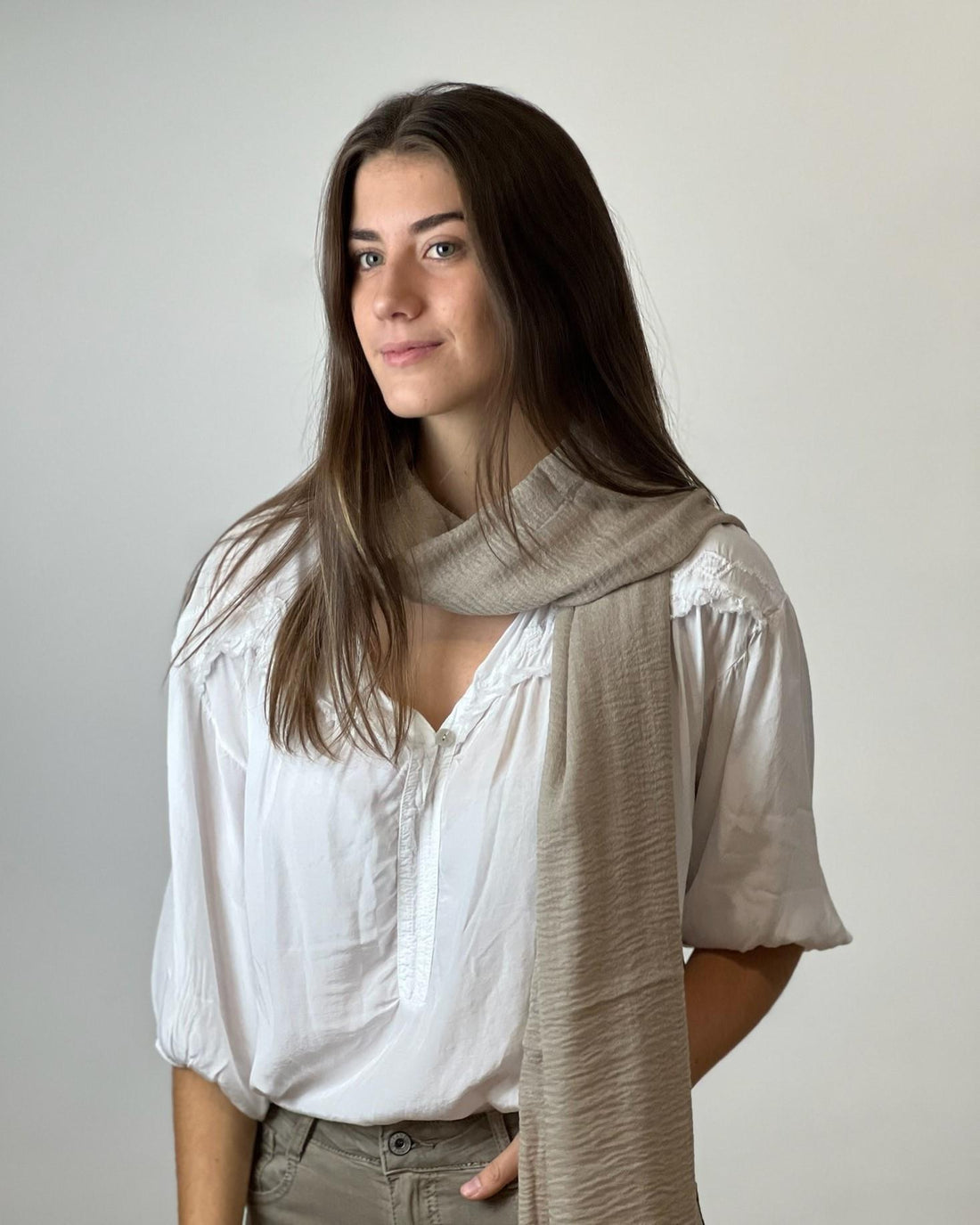 Ests foulards finos de tacto suave y acabado arrugado es el complemento ideal para dar un toque único a cualquier look. Con un diseño liso, flecos en los cuatro lados y efecto crinkle, se adapta fácilmente a cualquier estilo gracias a su tejido ligero, manejable y agradable al tacto.