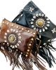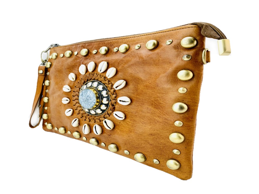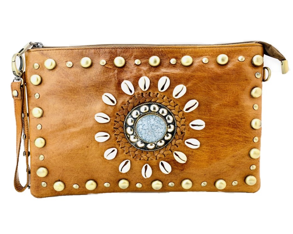 Esta bandolera será el compañero perfecto para el próximo paseo por el parque o una cita en un café con tu mejor amigo! El bolso de cuero con chapa central y tachas y conchas colocadas en forma elegante, tiene espacio suficiente en sus dos compartimentos interiores para que tu libro favorito. Su estilo vintage hace que el bolso sea un compañero atemporal.
