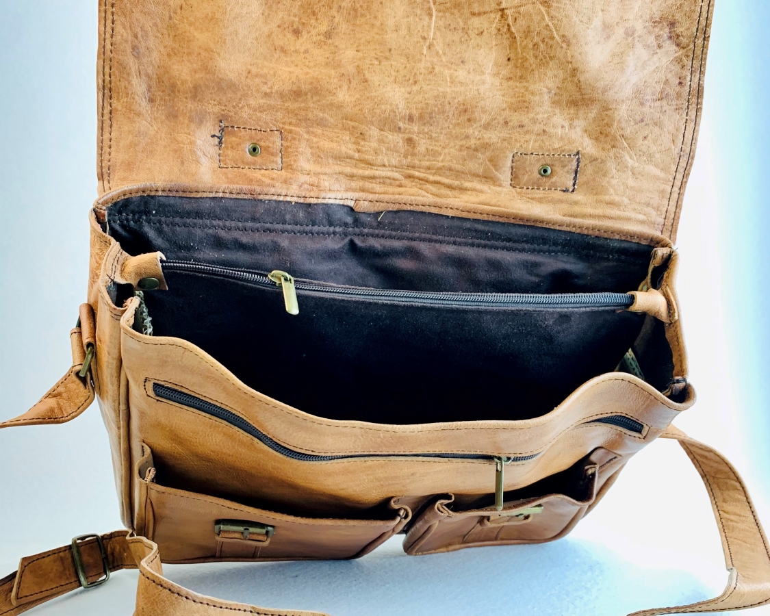 Todos nuestros productos de cuero están hechos a mano y su nueva bolsa de cuero puede estar sujeta a una variación natural en tamaño y color.