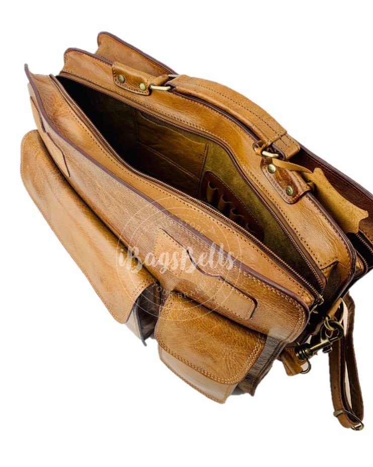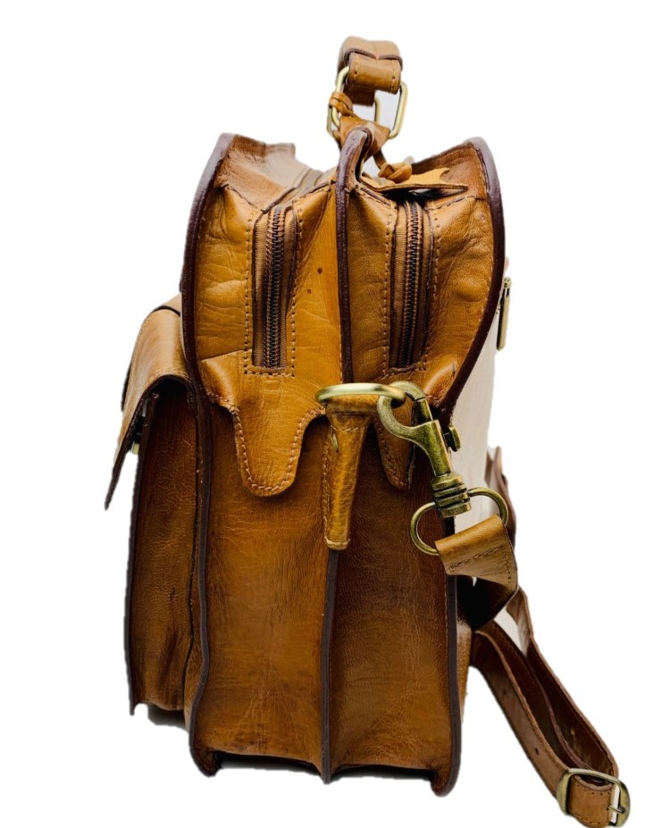 Descubre la funcionalidad y el estilo único de nuestro maletín bandolera para hombre. El exterior está confeccionado a mano con cuero artesanal, brindando un toque de distinción. Aunque el material no es impermeable, su durabilidad es evidente.