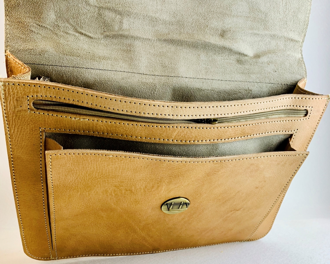Todos nuestros productos de cuero están hechos a mano y su nueva bolsa de cuero puede estar sujeta a una variación natural en tamaño y color.