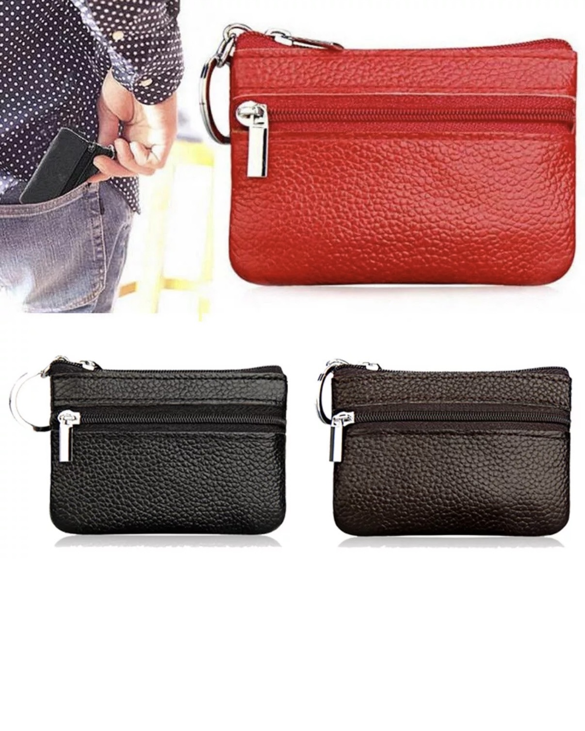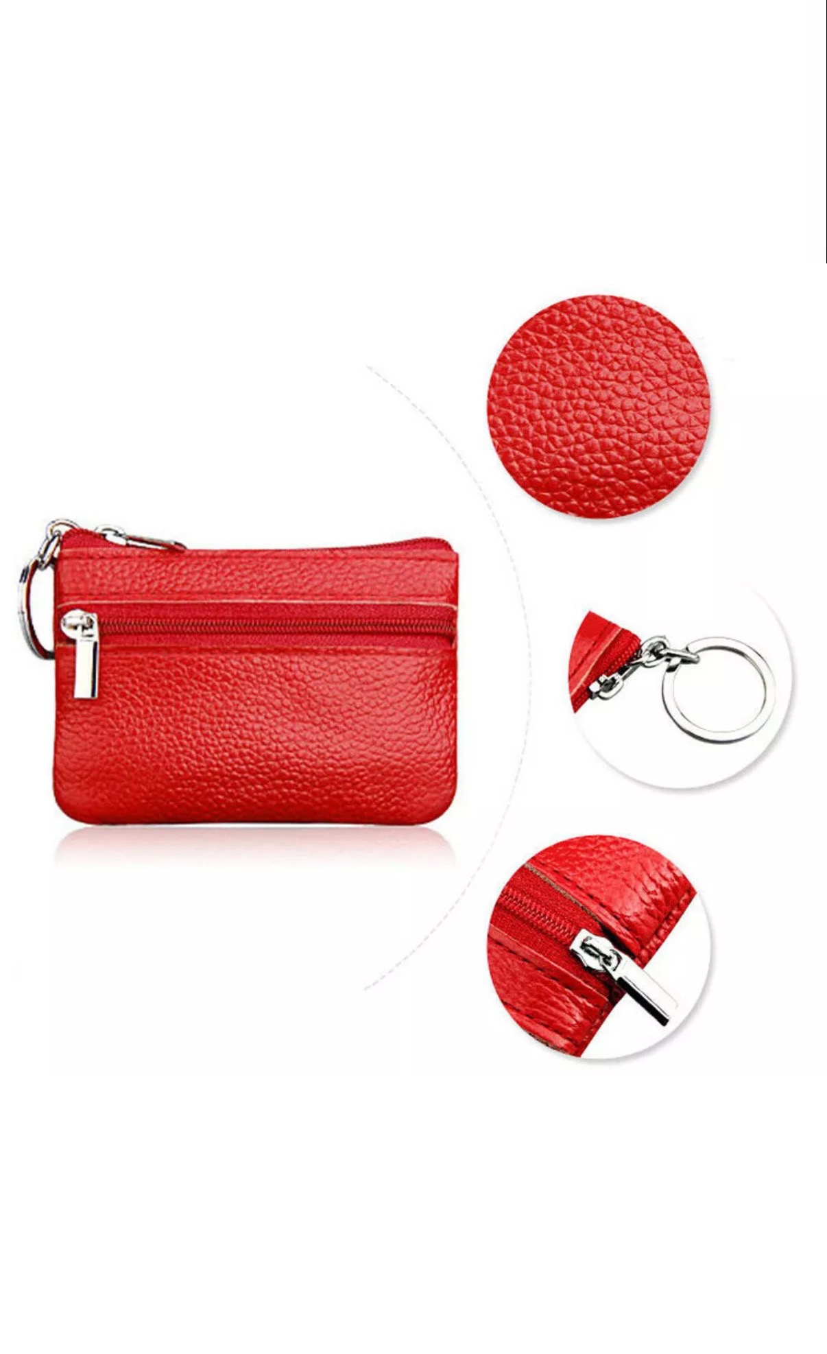 Monedero de cuero rojo con cremallera
