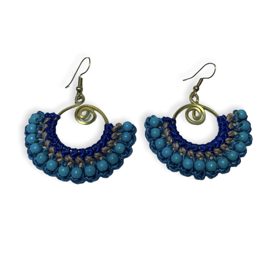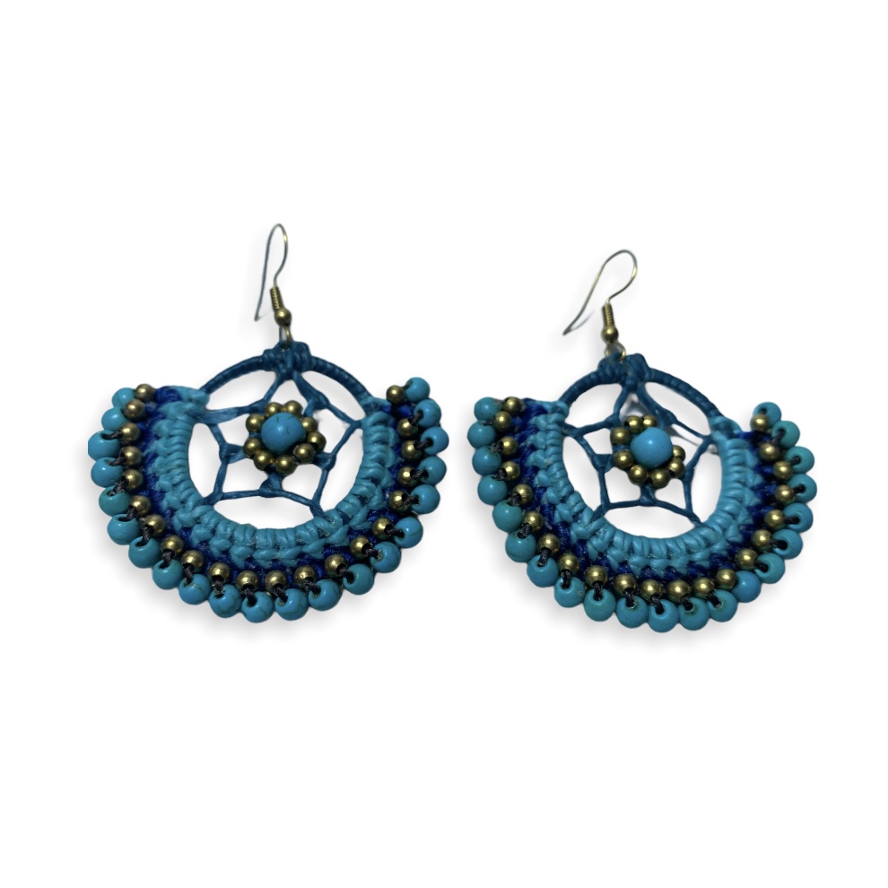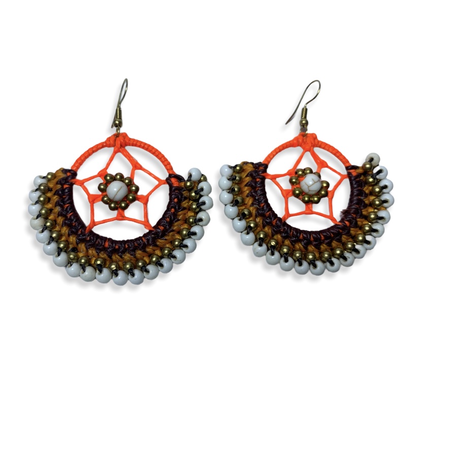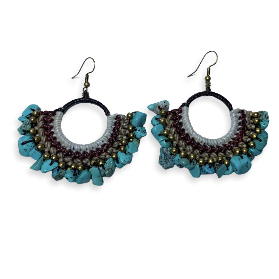 Pendientes hechos a mano tejido en macramé y abalorios de latón hecho a mano 6 cm aprox.