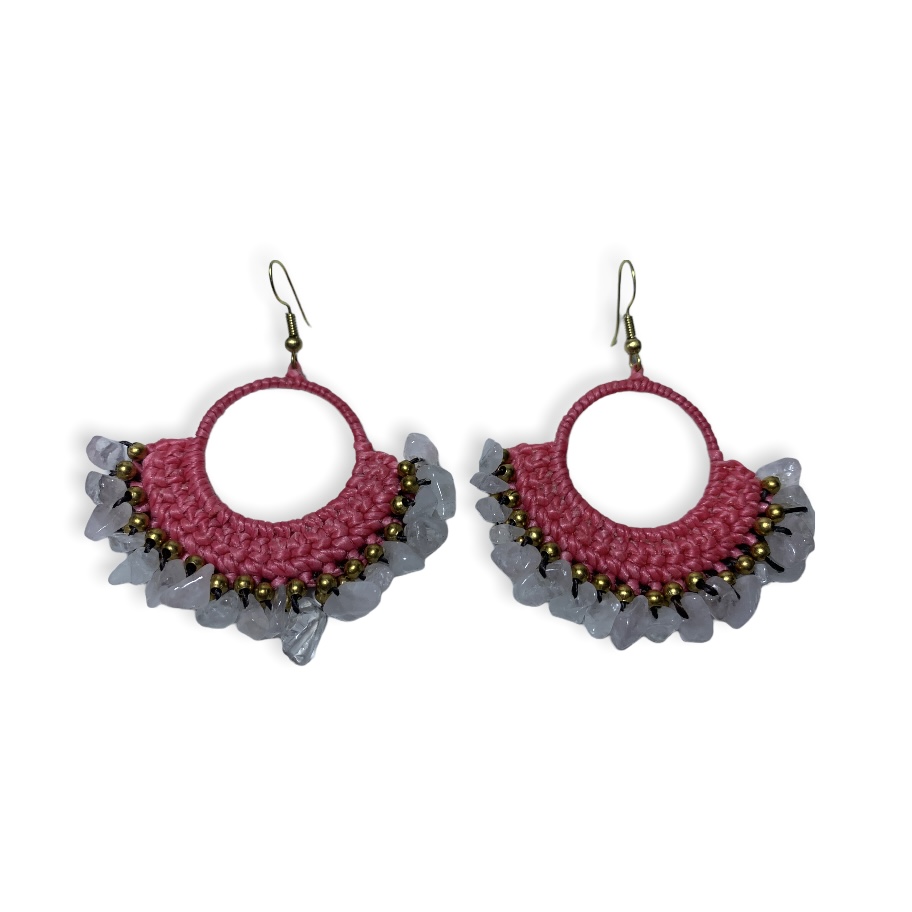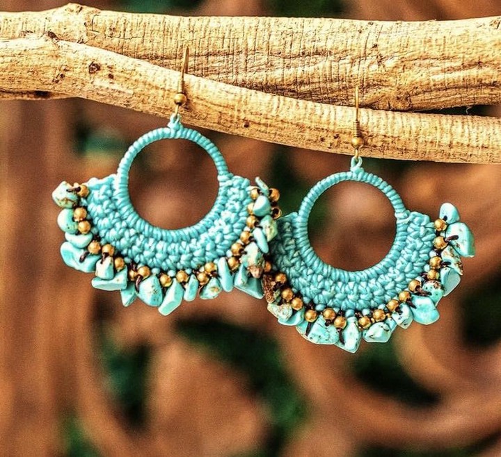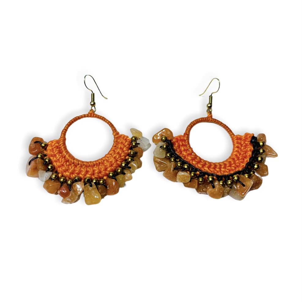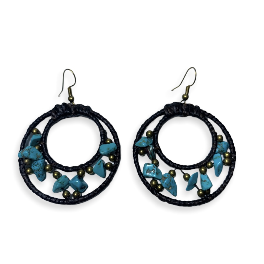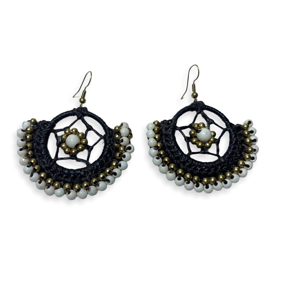 Pendientes hechos a mano tejido en macramé y abalorios de latón hecho a mano 6 cm aprox.