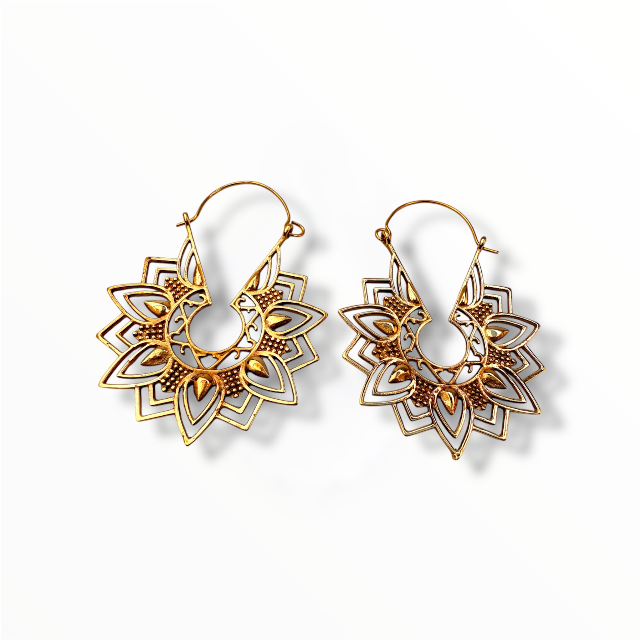 Pendientes boho étnicos en tono dorado envejecido, estilo hippie chic, ideales por su tamaño mediano su forma favorece a cualquier tipo de rostro. Así que no te quedes sin los tuyos.. ¡se sentarán genial!
