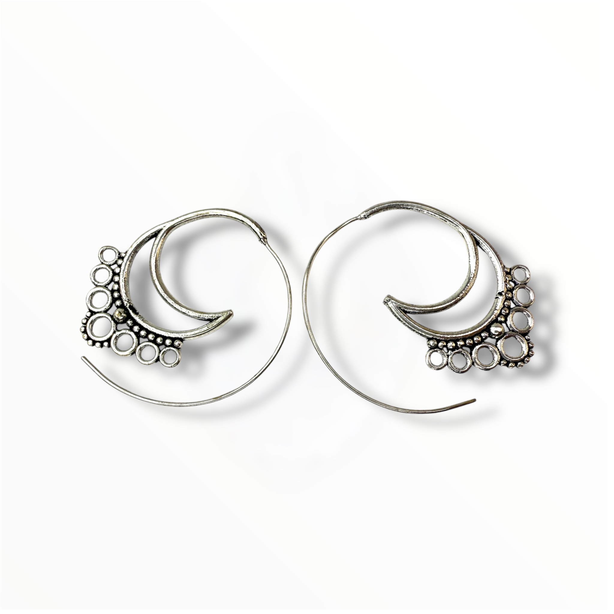 Pendientes boho étnicos en tono plateado envejecido, estilo hippie chic, ideales por su tamaño mediano su forma favorece a cualquier tipo de rostro. Así que no te quedes sin los tuyos.. ¡se sentarán genial!