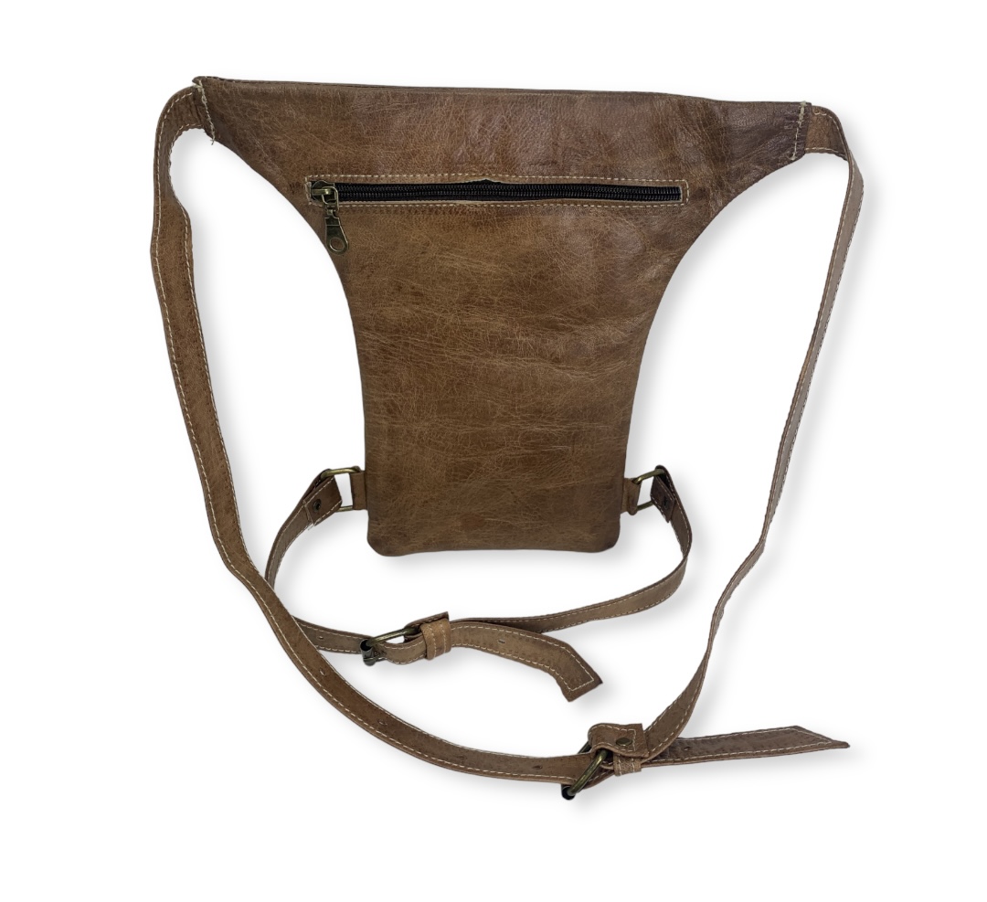 Descubre la funcionalidad y el estilo de nuestra riñonera de cuero artesanal en color camel, un accesorio unisex ideal para los amantes de las motos y los festivales. Fabricada con cuero de alta calidad, esta riñonera ofrece durabilidad y un aspecto elegante que complementará cualquier conjunto.