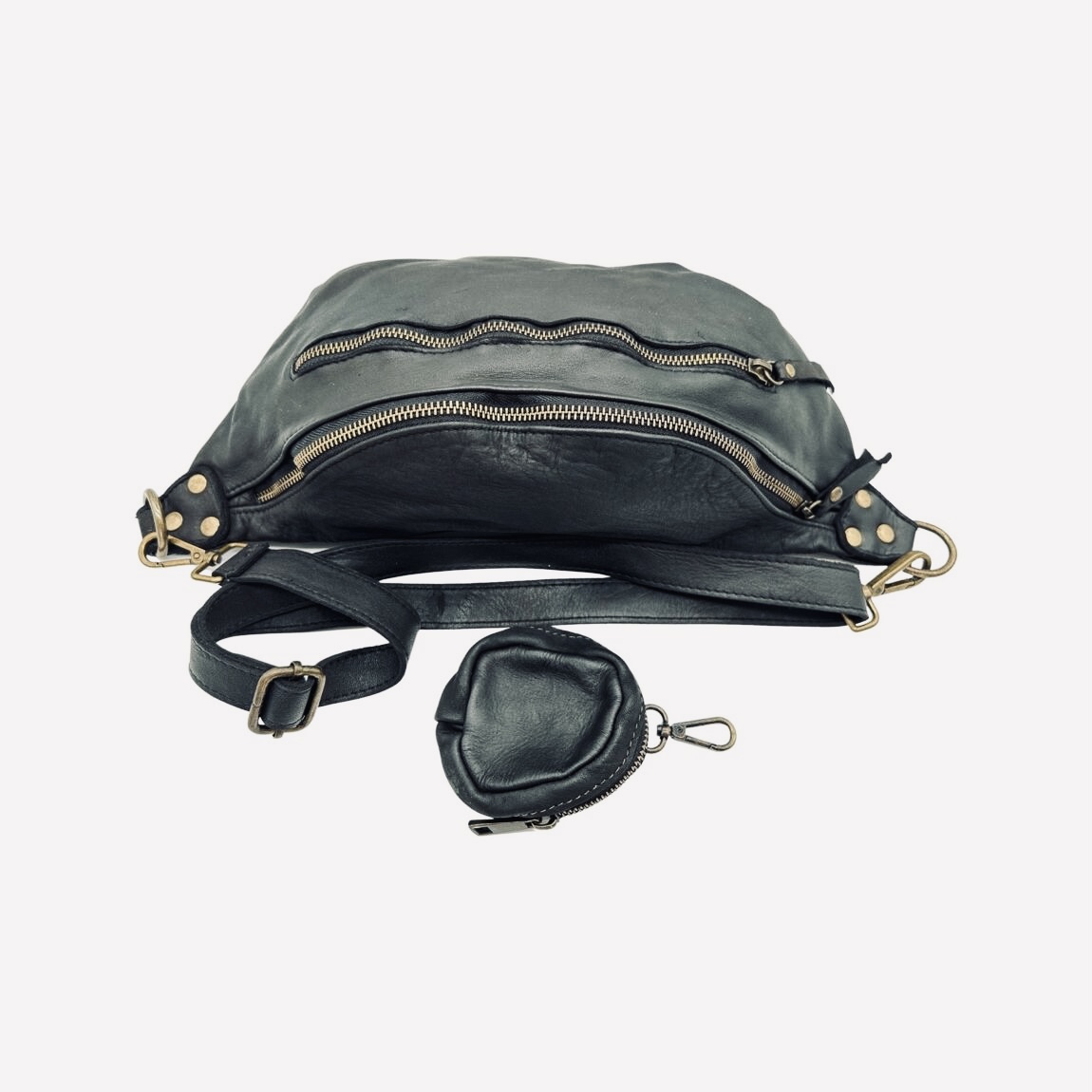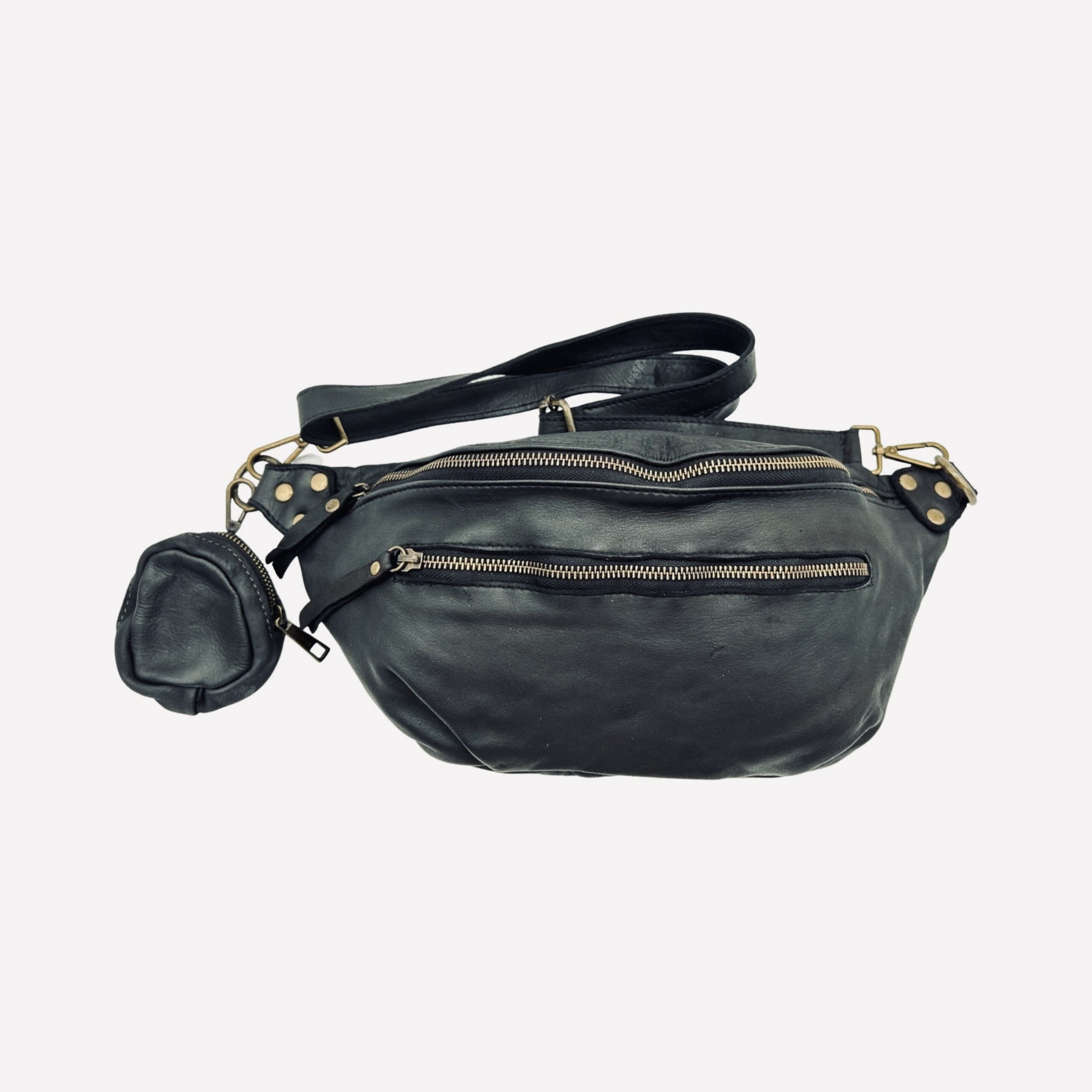 Más que un bolso de cinturón, Triana está diseñado para ser usado cómodamente como un bolso bandolera con espacio para todas sus necesidades, sin perder su elegante atractivo. Hecho a mano en suave cuero italiano vintage, es una adición impresionante al vestuario de cualquiera que trasciende las tendencias de la moda en constante cambio. Tanto a los hombres como a las mujeres les encanta este accesorio elegante y funcional.