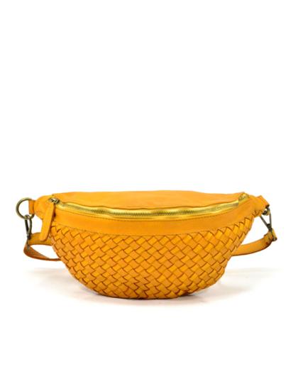 Riñonera mostaza de piel lavada trenzada Vicky