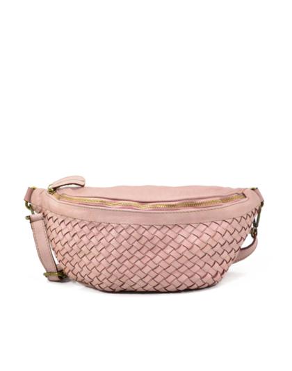 Riñonera rosa palo de piel lavada trenzada Vicky